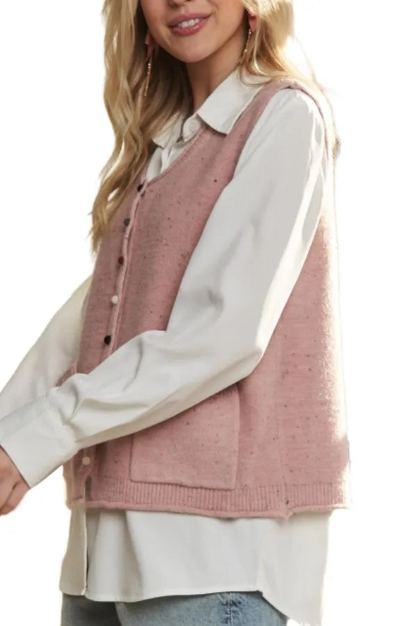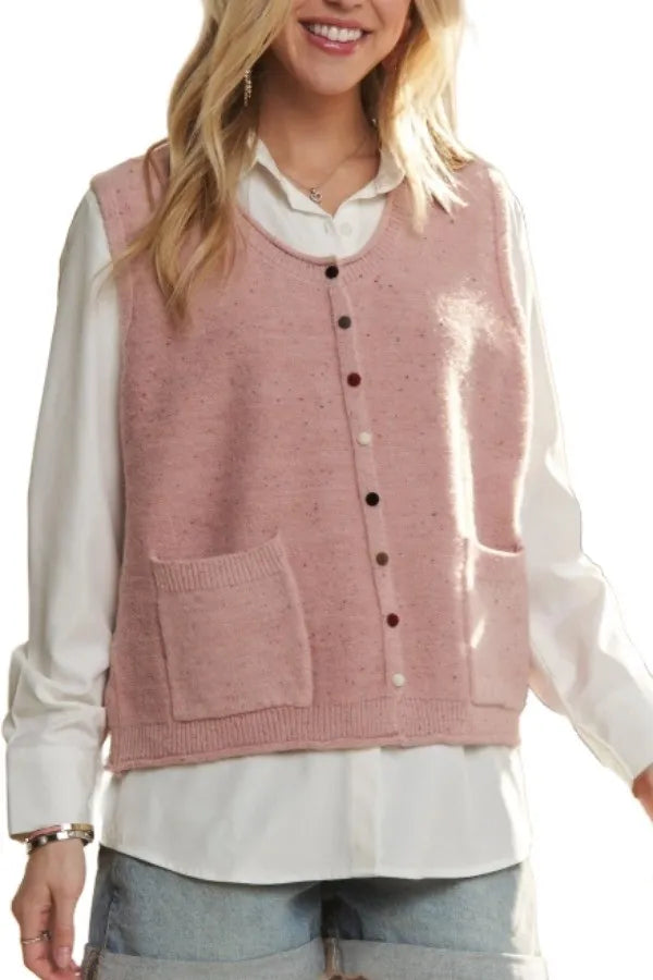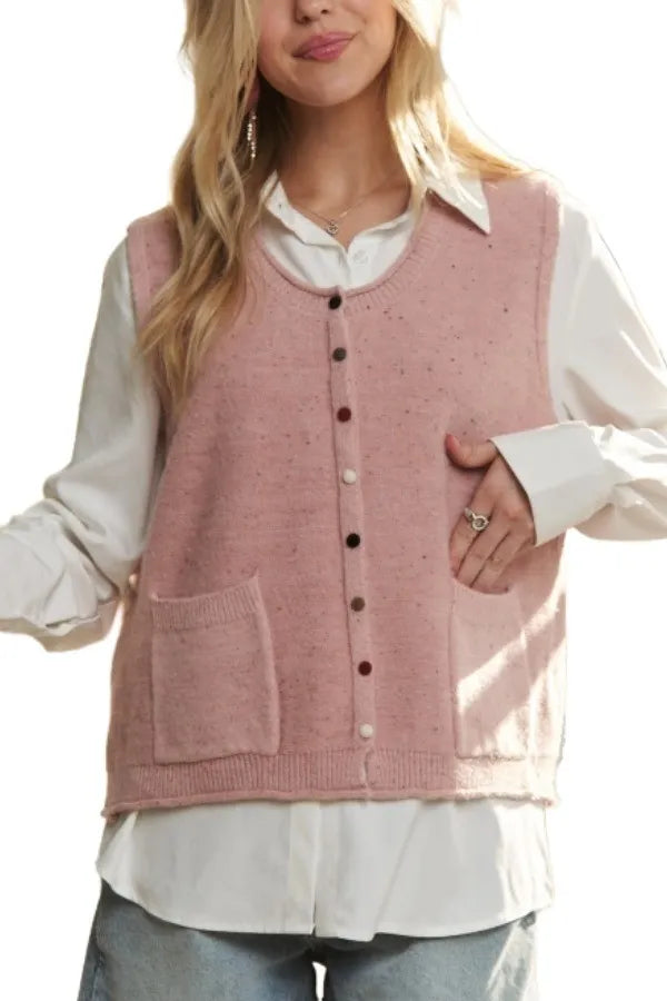 This button-down vest is a comfortable and functional piece that is both stylish and practical. The button-down design allows for easy wear and layering, making it a versatile addition to your wardrobe. The addition of pockets provides a convenient and casual touch, perfect for storing small items or simply adding a laid-back vibe to your outfit. Made with soft and cozy fabric, this vest offers both comfort and style for everyday wear. Elevate your look with this chic and versatile vest that effortlessly combines functionality with a touch of sophistication.
