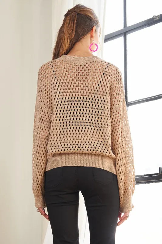 Shine bright in this Round Neck Lurex Crochet Top. The lurex thread adds a touch of sparkle and glamour, perfect for adding some dazzle to your outfit. The crochet detailing offers a delicate and intricate look, adding texture and interest to the top. The round neckline provides a classic touch that makes it easy to style with various bottoms. Pair this top with jeans or a skirt for a chic and stylish ensemble that will make you feel confident and sophisticated.
