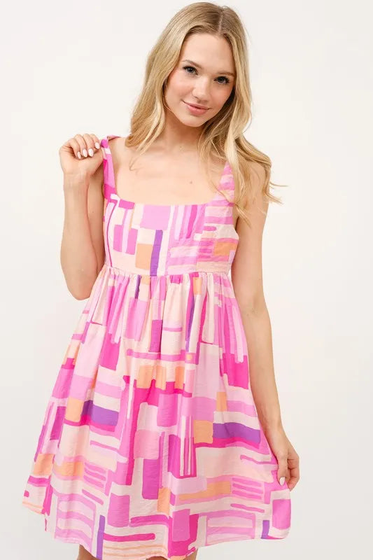 The geo printed square neck babydoll mini dress is a trendy and playful addition to your wardrobe. The square neckline adds a modern and chic touch to the dress. The geo print is edgy and eye-catching, perfect for making a statement. This babydoll mini dress is fun and flirty, making it ideal for a night out with friends or a casual day out. Pair it with ankle boots and a denim jacket for a cool and stylish look that will turn heads wherever you go.