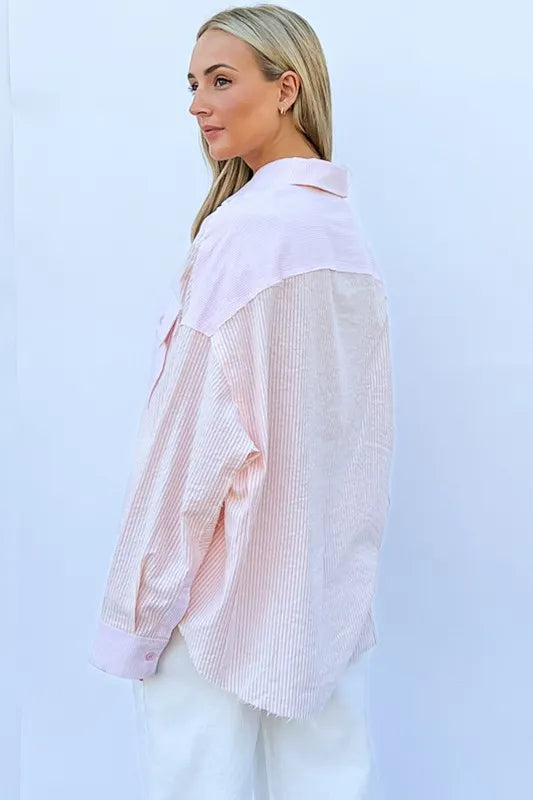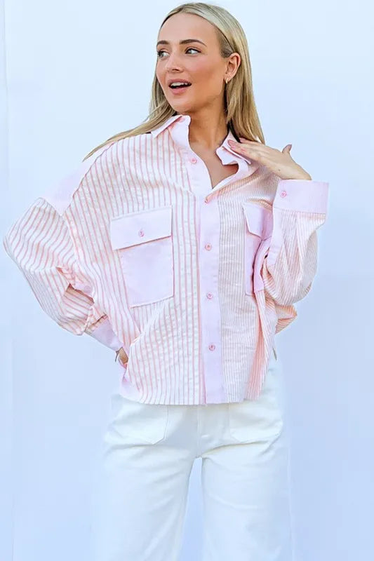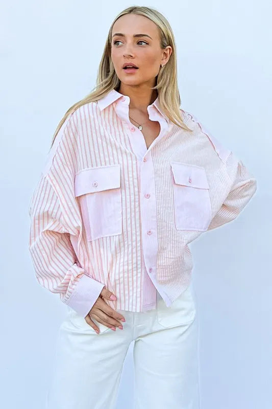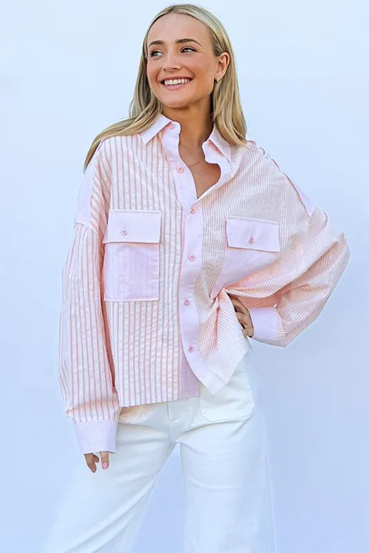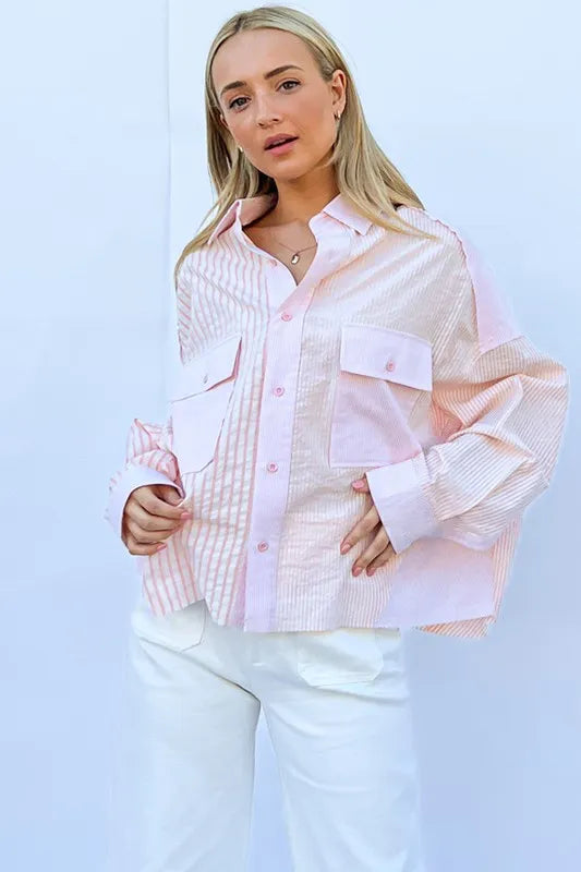 And The Why Multi Striped Mix-Match Patched Pocket Shirt