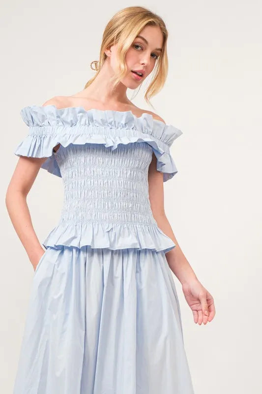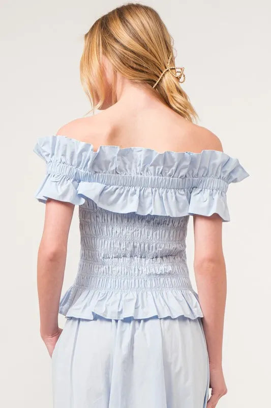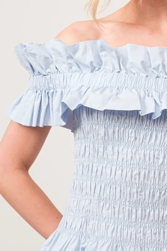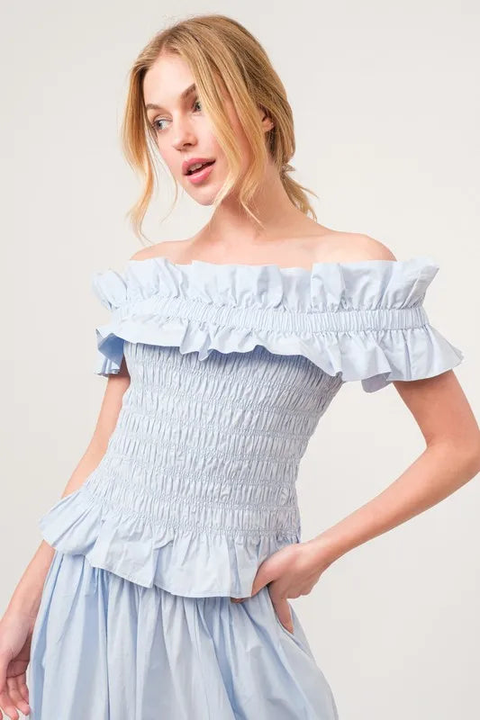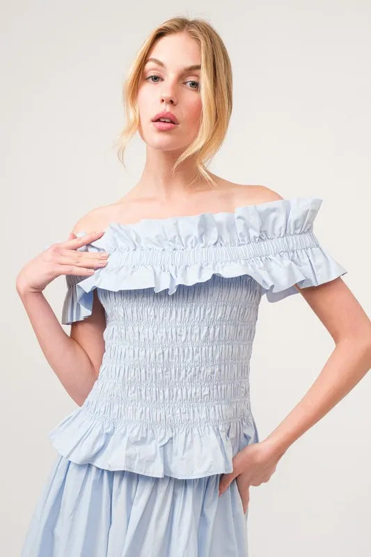 And The Why Ruffled All-Over Smocked Off Shoulder Top