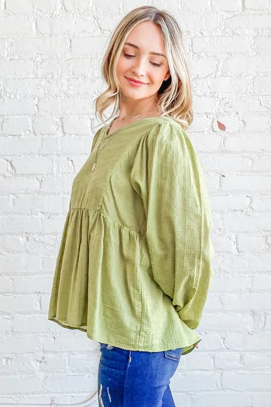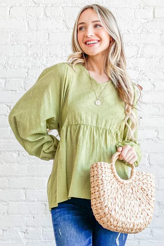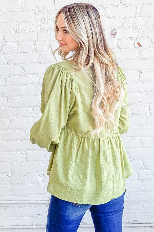 The textured V-neck blouse top is a sophisticated and versatile piece that offers a stylish and flattering silhouette. The textured fabric adds depth and interest to the blouse, while the V-neckline creates an elongating and elegant look. This blouse is perfect for both casual and dressy occasions, providing a chic and polished appearance. Pair it with jeans for a casual day out or with trousers for a more formal event. The combination of texture and neckline makes this blouse a timeless and classic addition to your wardrobe.
