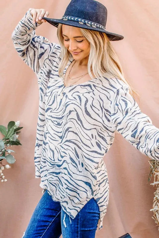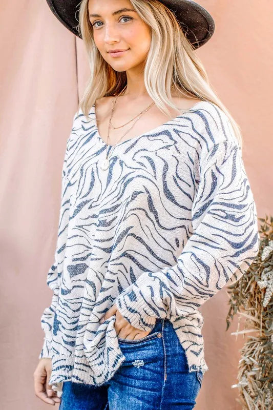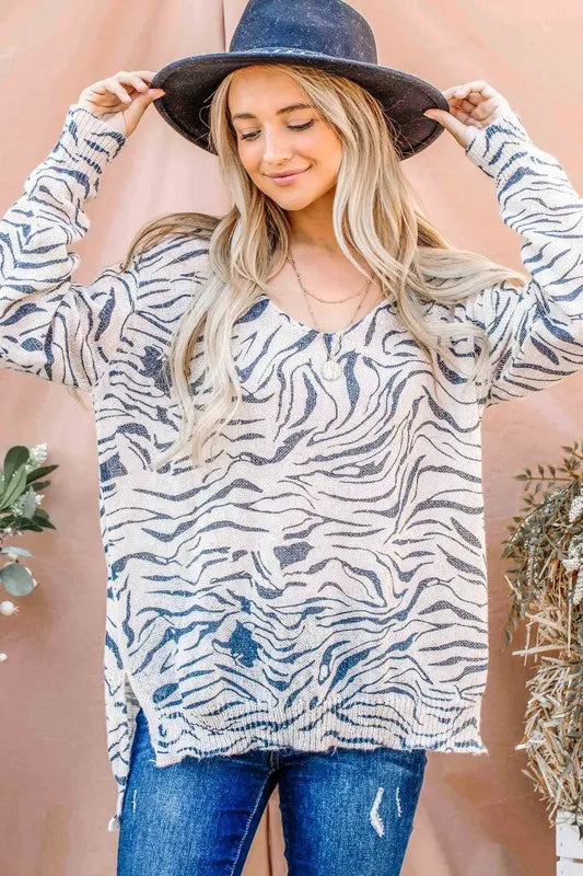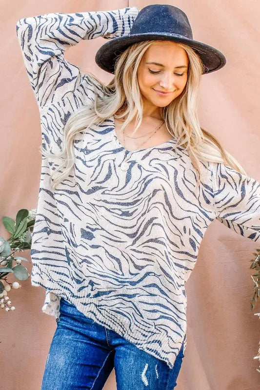 The zebra screen print pullover knit top is a bold and trendy choice for adding a touch of animal print... Read more