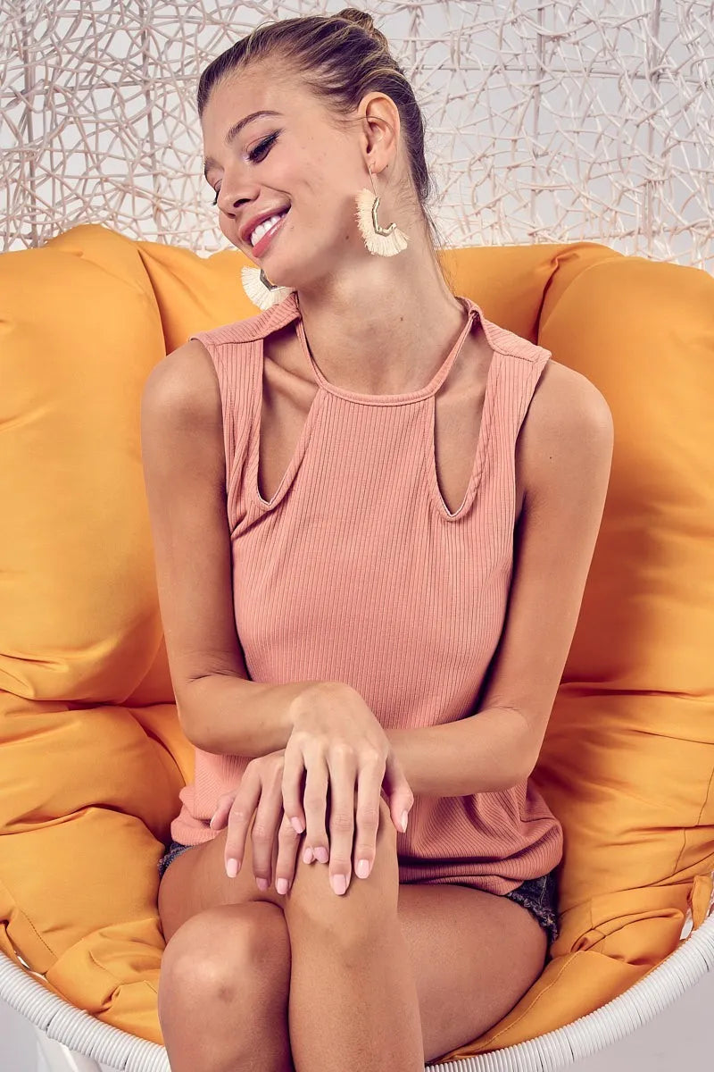 The rib knit shoulder cut-out detailed top is a modern and chic addition to your wardrobe. The rib knit fabric provides a sleek and comfortable fit, while the shoulder cut-out detailing adds a trendy and edgy touch to this top. Pair it with high-waisted jeans or a skirt for a stylish outfit that shows off a hint of skin. Embrace the contemporary and fashion-forward vibe of this rib knit shoulder cut-out detailed top for a standout and on-trend ensemble.