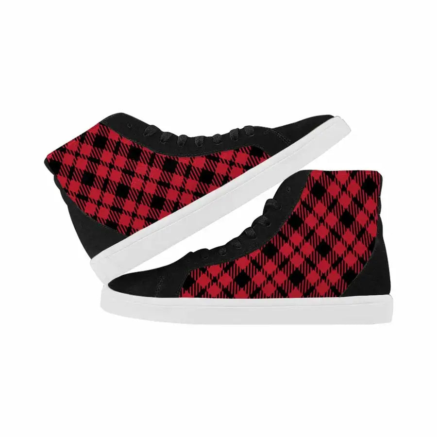 Uniquely You Sneakers for Men, Red and Black Buffalo Plaid - High Top Sports Shoes