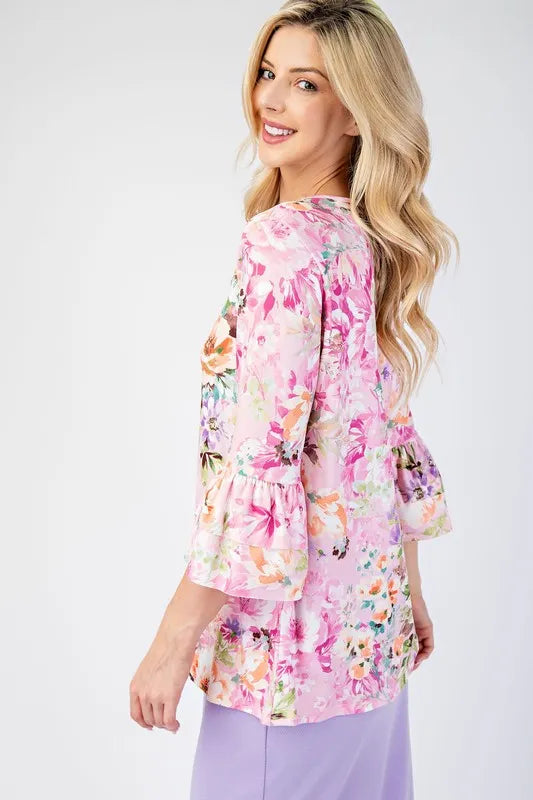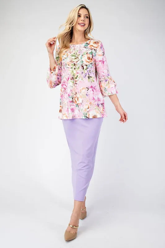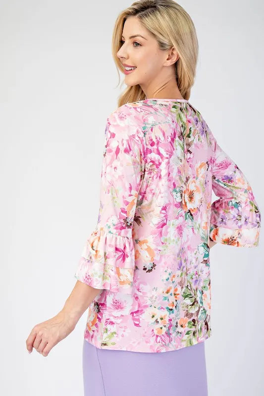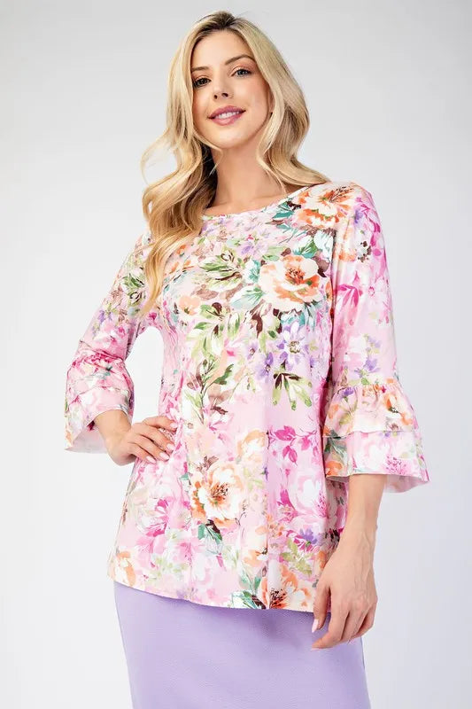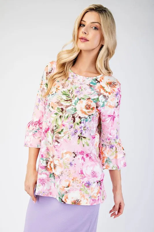 Celeste Full Size Floral Layering Tops with None Slip Sleeves Plus Size