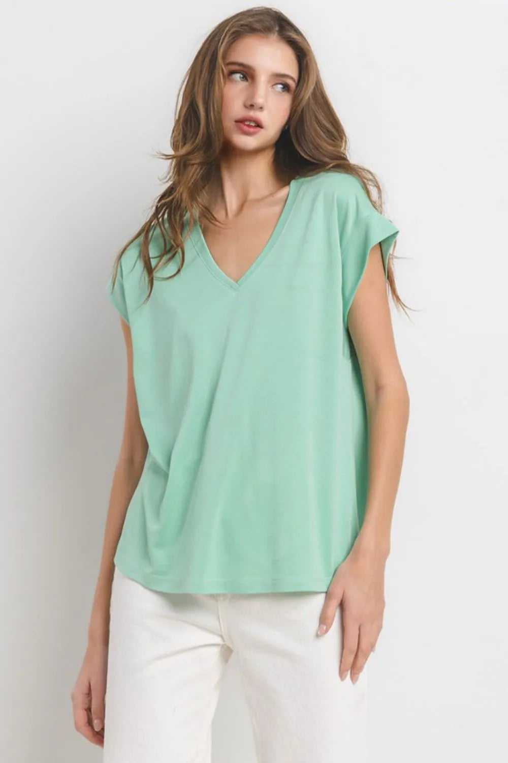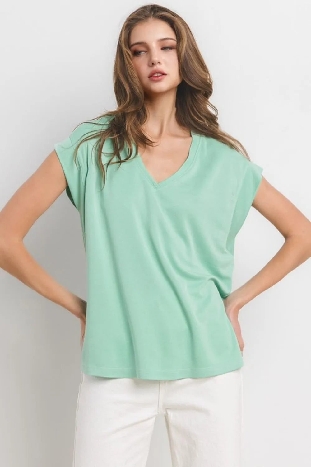 Ces Femme Modal V-Neck Cap Sleeve Top