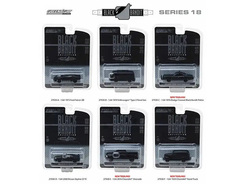 Black Bandit Series 18, 6pc Set 1/64 Diecast Models by Greenlight