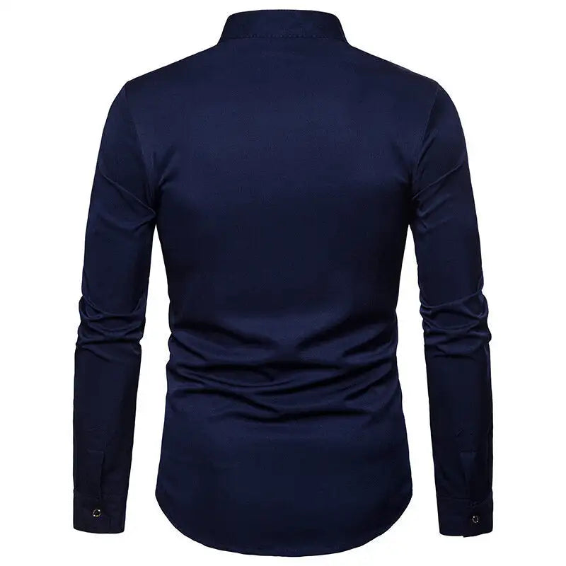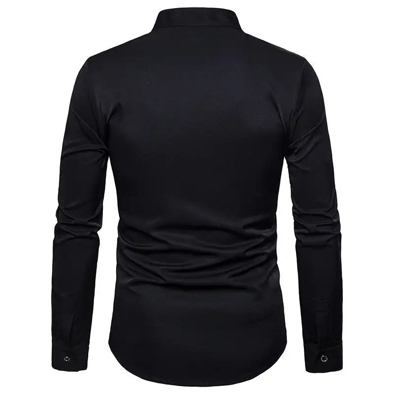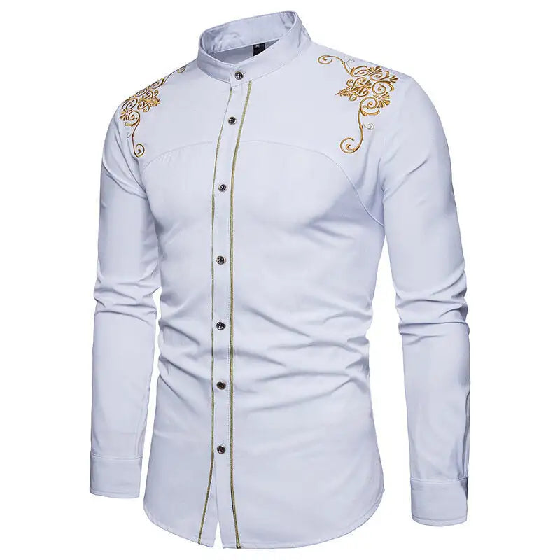 Mens Casual Shirts Slim Fit Long Sleeve Button Down Dress Shirts Tops with Embroidery