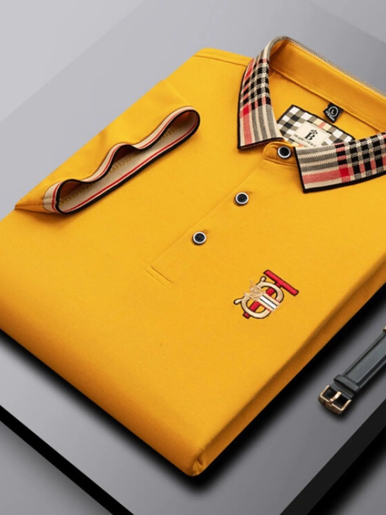 Men's Plus Size Classic Plaid Collar Casual Polo Shirt