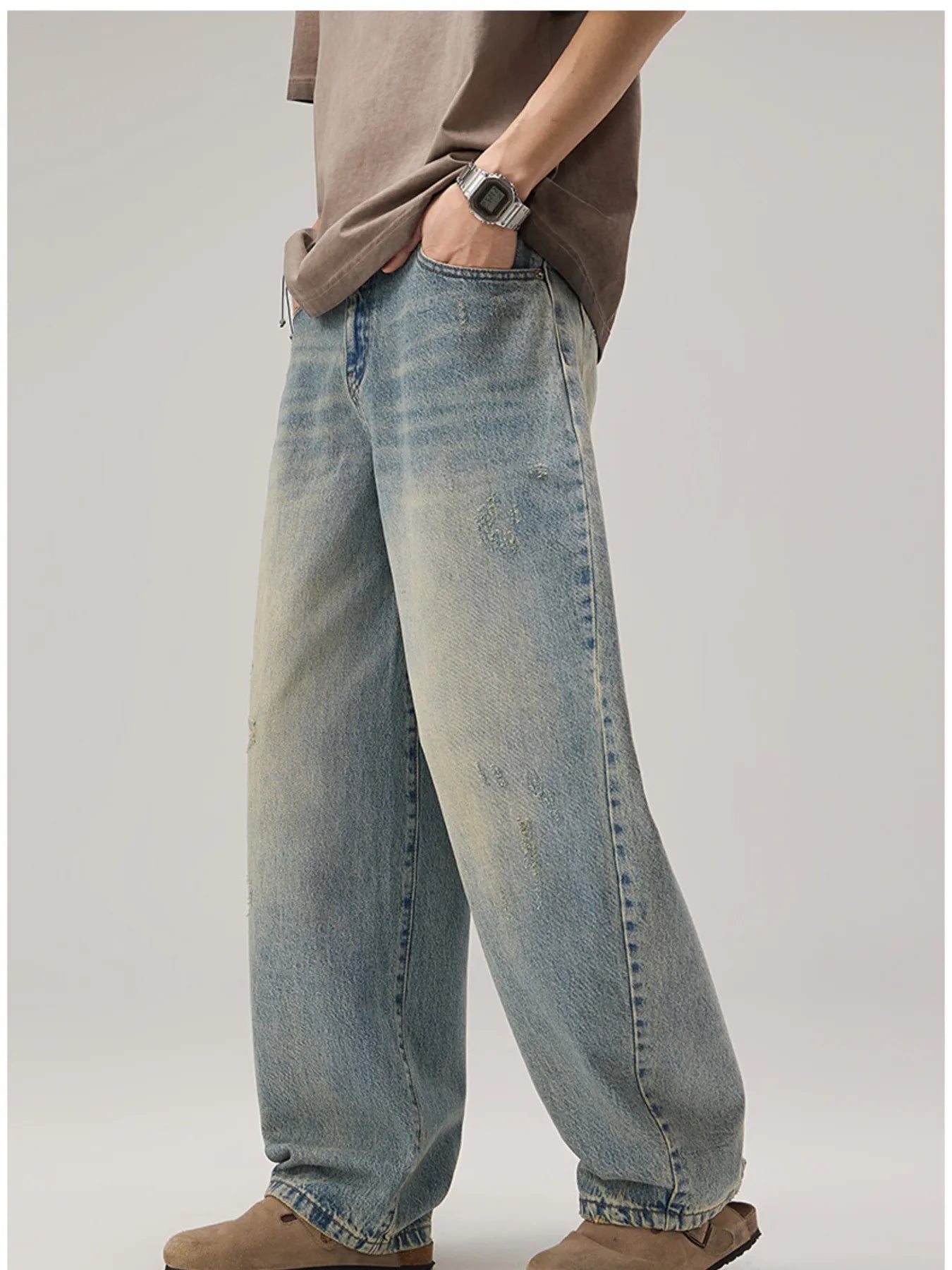 Men's Vintage Wash Wide Leg Jeans