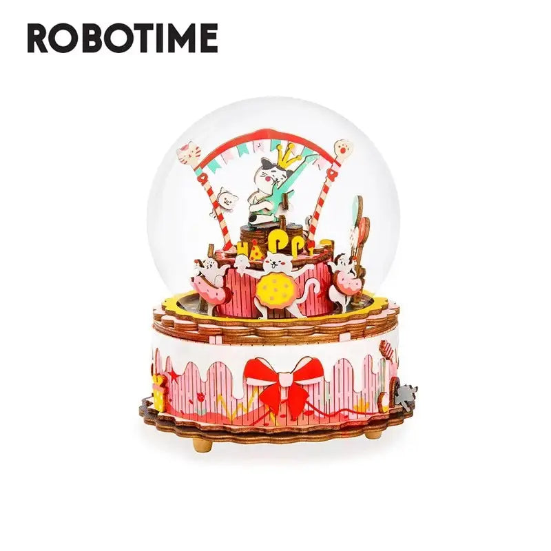 Robotime New Arrival DIY 3D Kitty Ballet Wooden Puzzle Game Assembly Moveable Music Box Toy Gift for Children Kids Adult AM