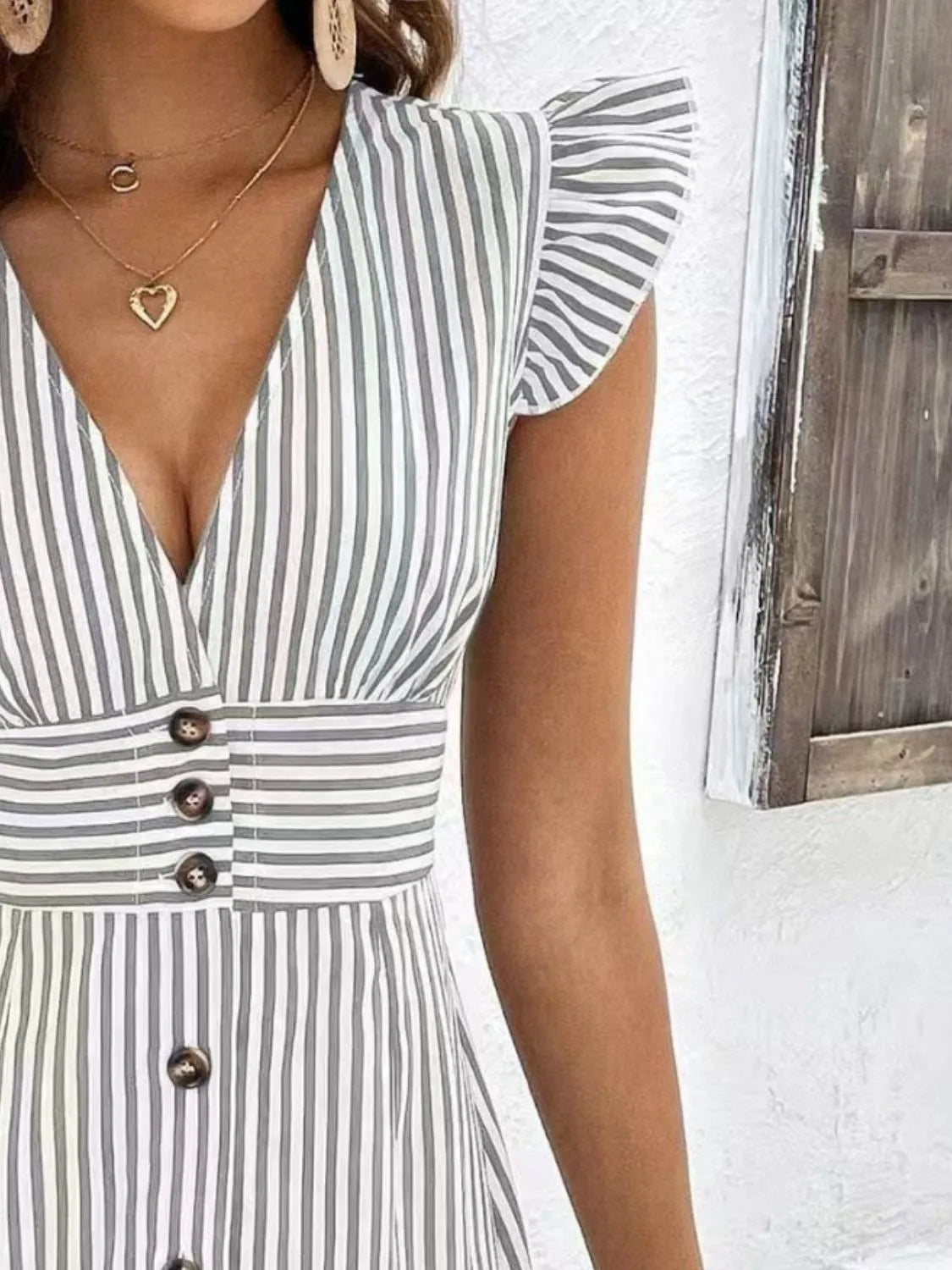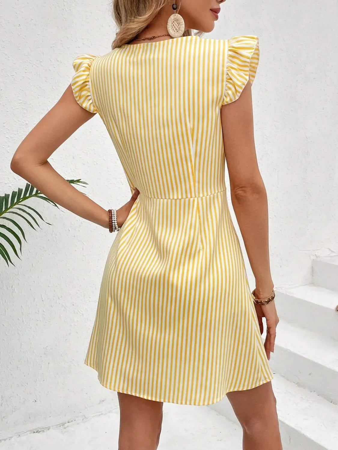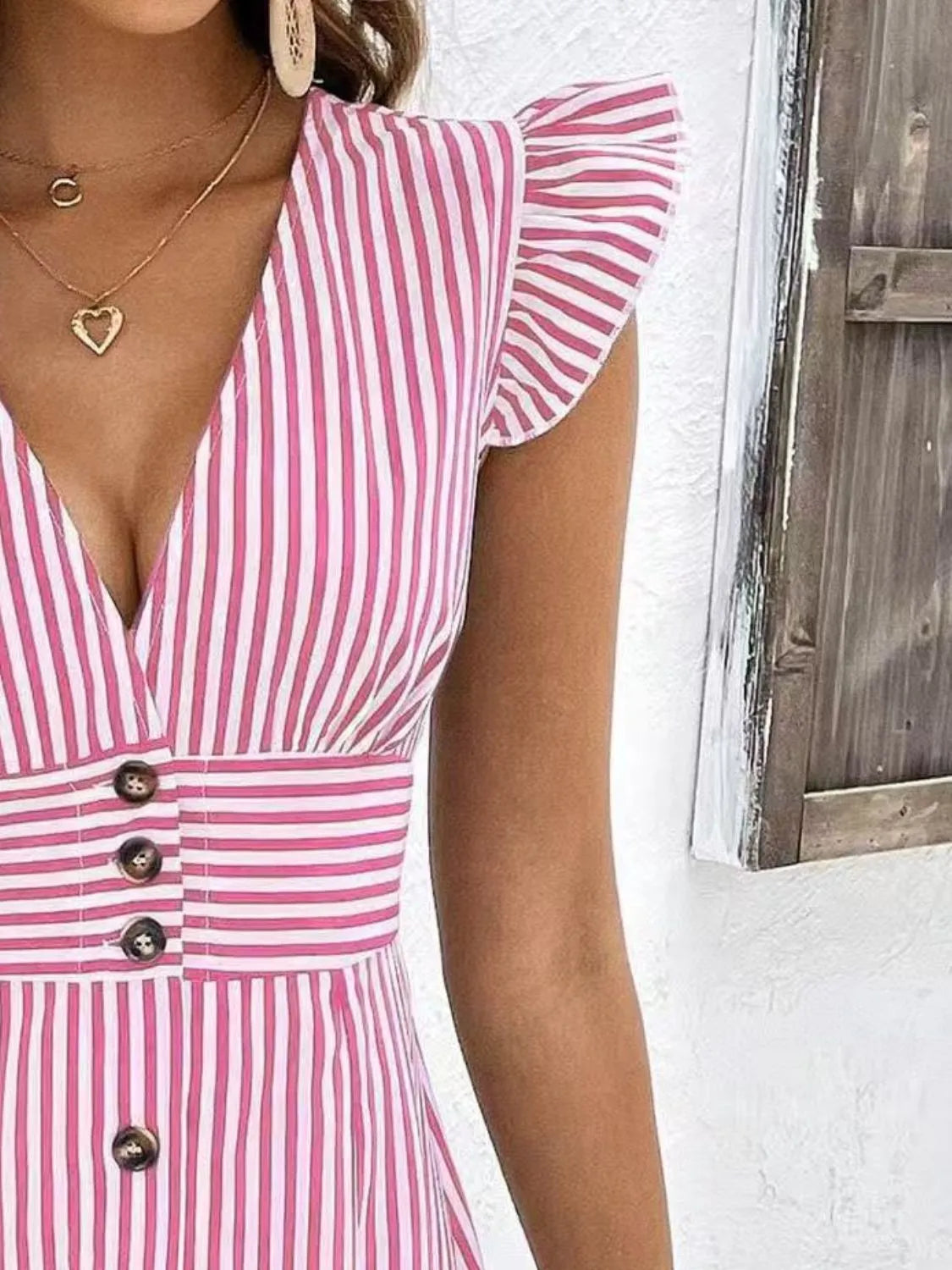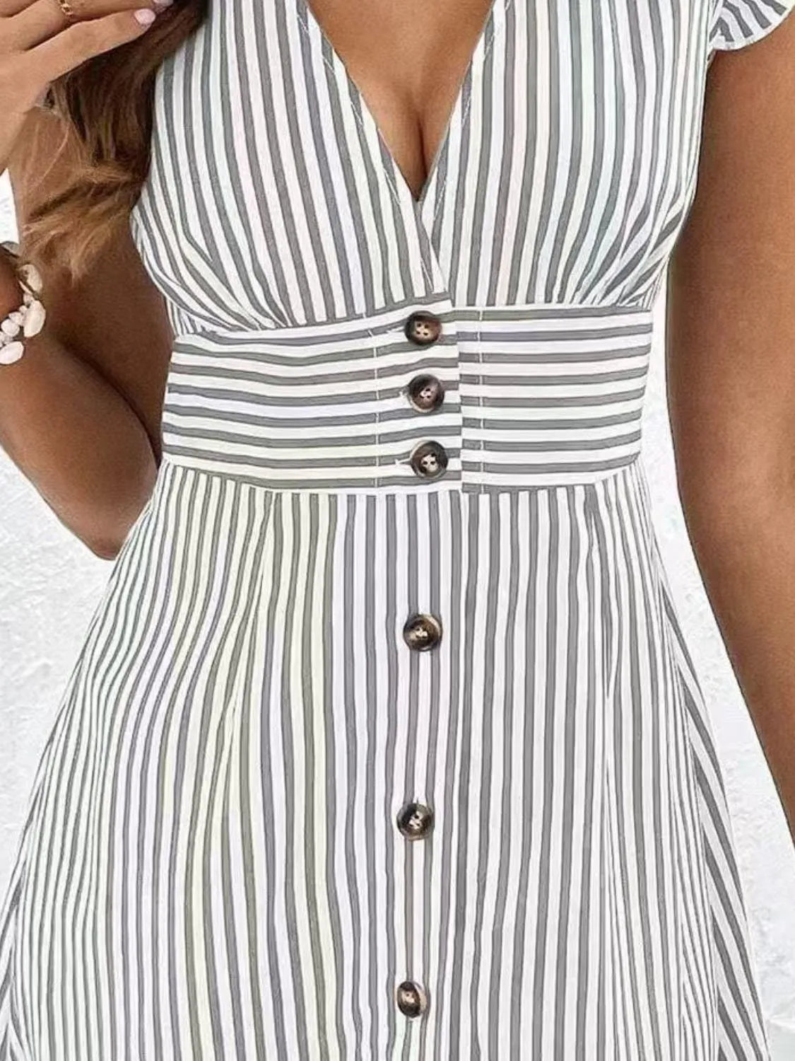Striped Button Front Cap Sleeve Dress