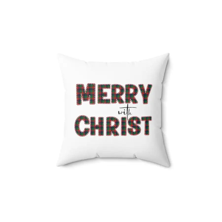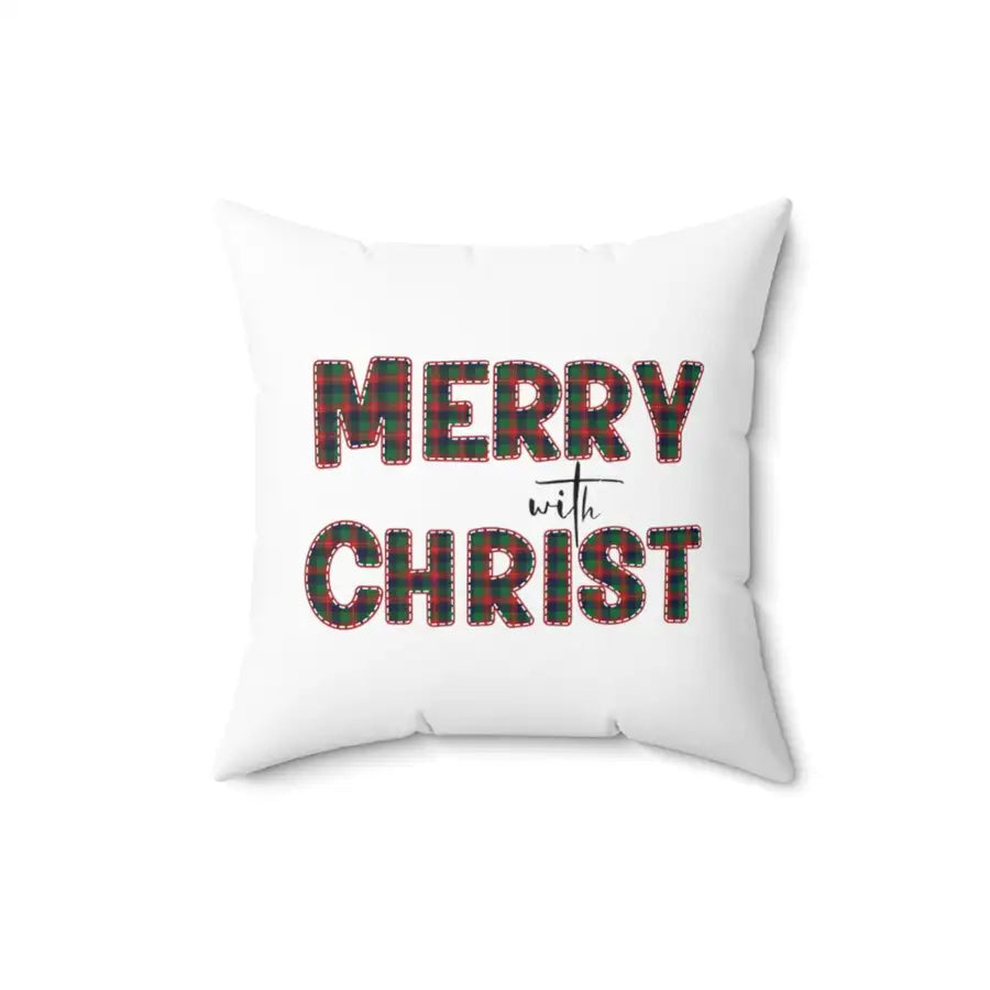 Uniquely You Throw Pillow Cover, Merry With Christ, Red And Green Plaid Christmas Holiday Pattern Print 2-Sided Print