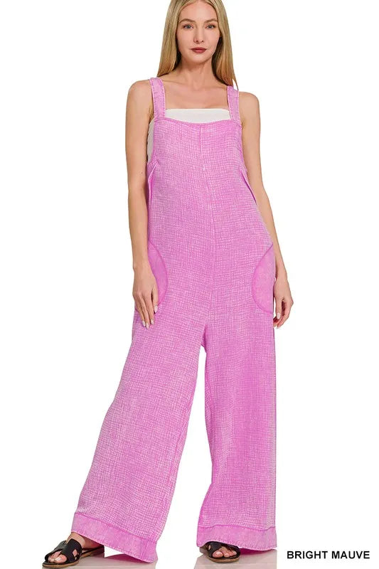 Double gauze washed wide leg overalls are a stylish and comfortable clothing option that combines a trendy silhouette with a... Read more