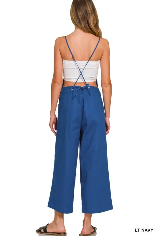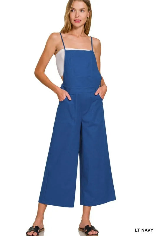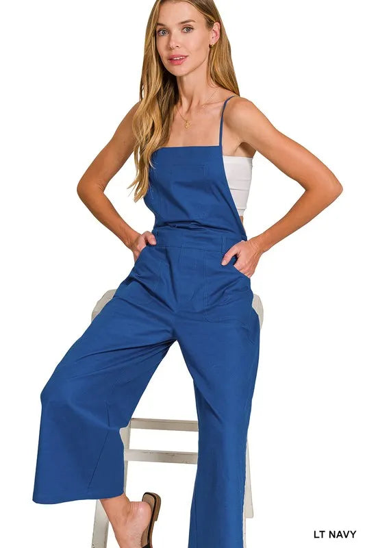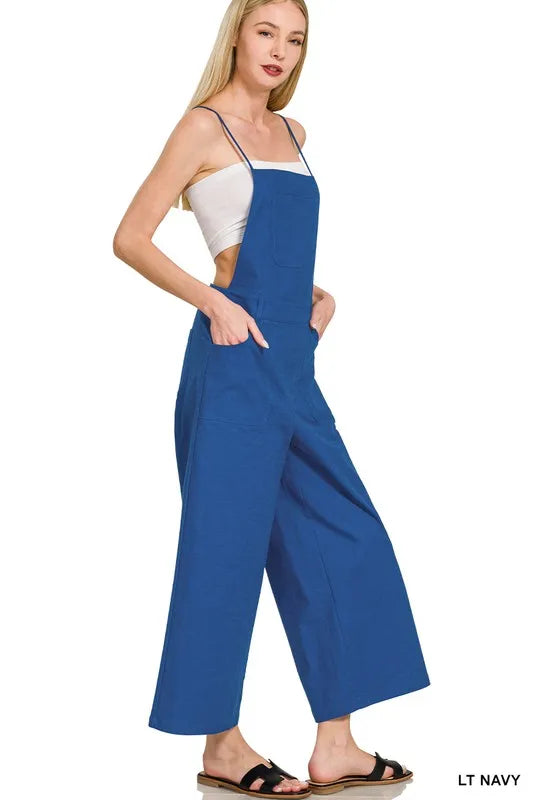 Woven spaghetti strap overalls are a stylish and versatile wardrobe piece that offers a playful and casual look. The spaghetti straps add a feminine and summery touch to the classic overall silhouette. These overalls are typically made from a light and breathable woven fabric, making them perfect for warm weather. The adjustable spaghetti straps allow for a customized fit, and the overall design provides a relaxed and effortless vibe. Woven spaghetti strap overalls can be styled with a variety of tops underneath, such as a t-shirt, tank top, or crop top, and can be paired with sandals or sneakers for a cute and laid-back outfit. They are a fun and trendy choice for those looking to add a touch of charm to their wardrobe.
