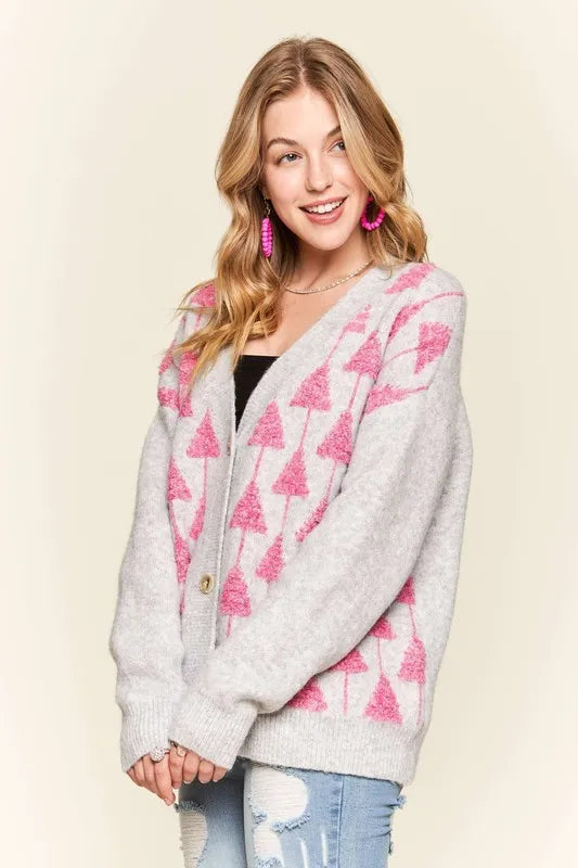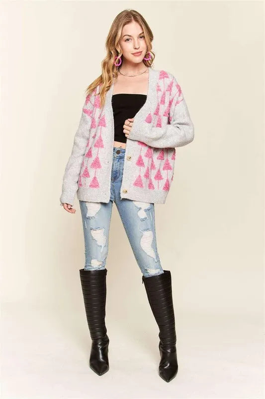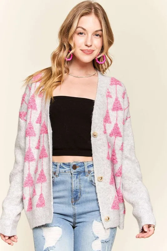 The fluffy tree accent cardigan is a cozy and whimsical addition to your wardrobe. With its fluffy texture and tree... Read more