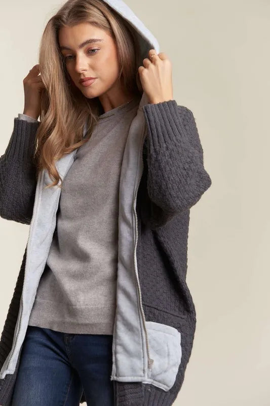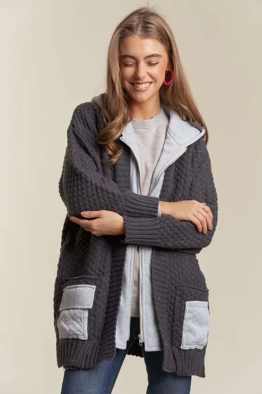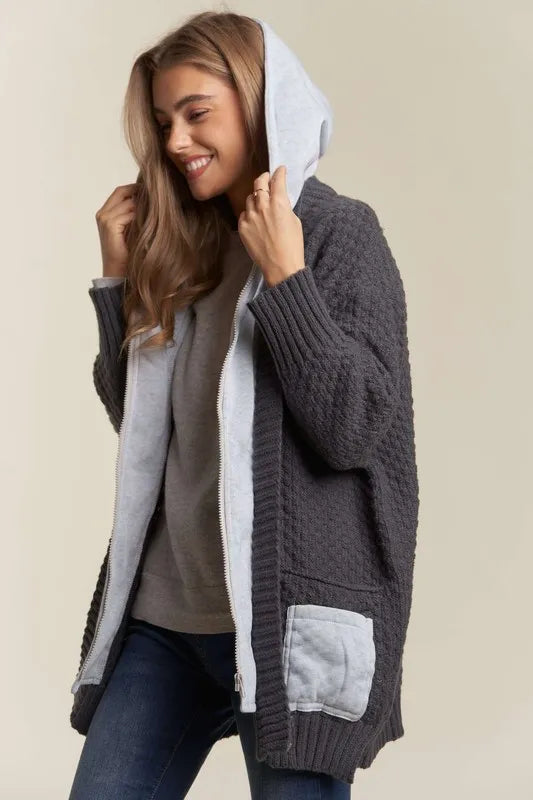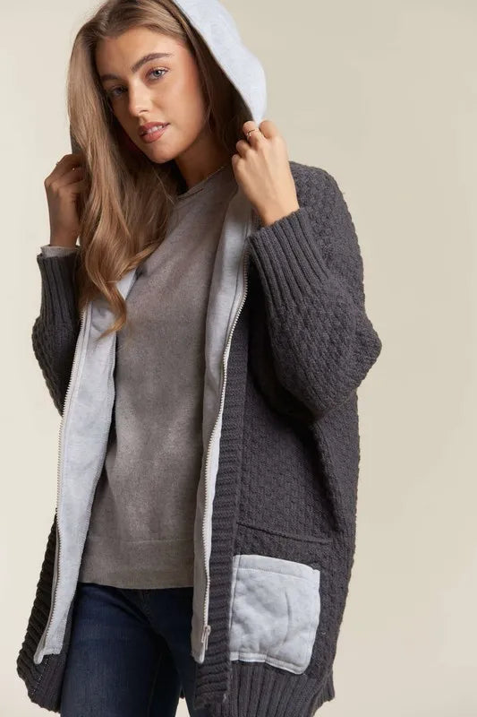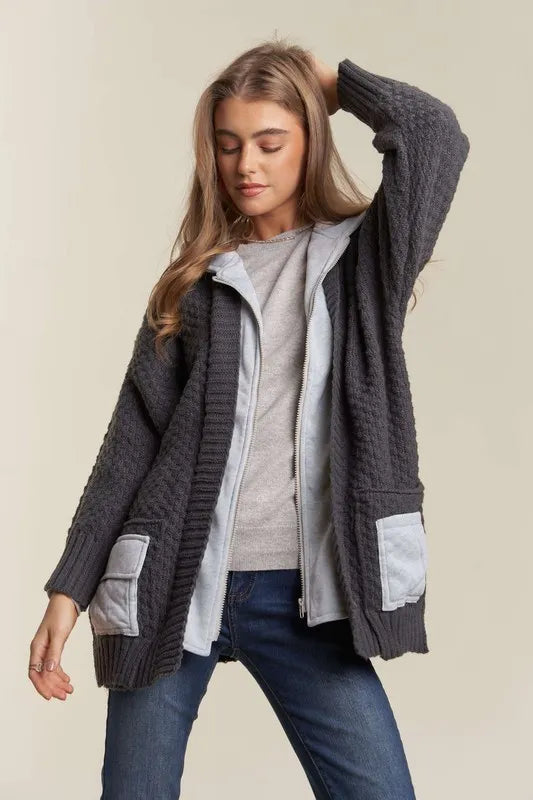 - Features: Basic style, Cable-Knit, Pocketed, Zipper