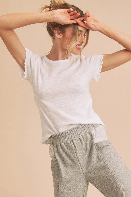 Aemi+Co Round Neck Lettuce Hem Short Sleeve T-Shirt