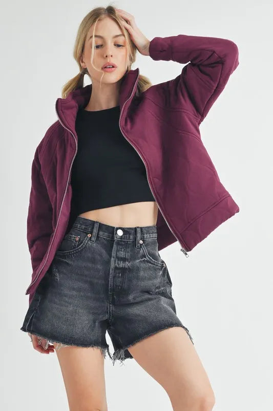 Aemi+Co Zip Up Raglan Sleeve Quilted Jacket