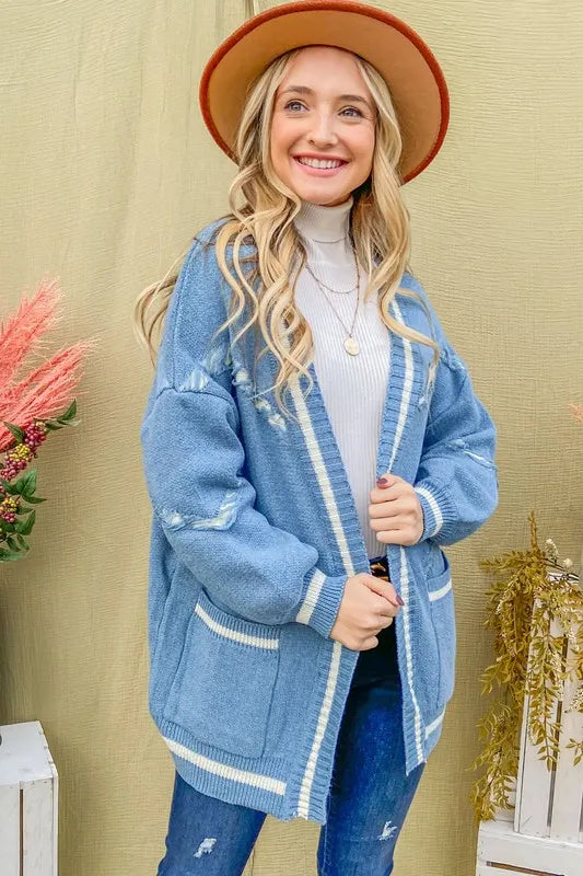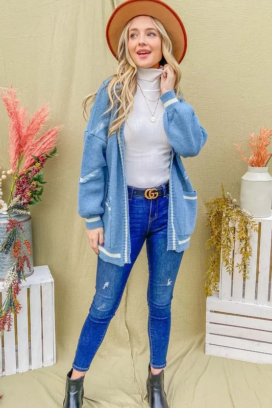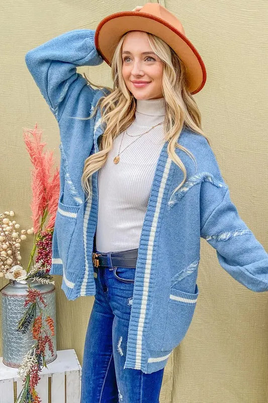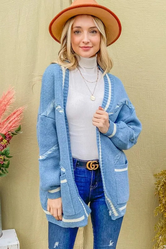 And The Why Cozy Fringe Detail Sweater Cardigan