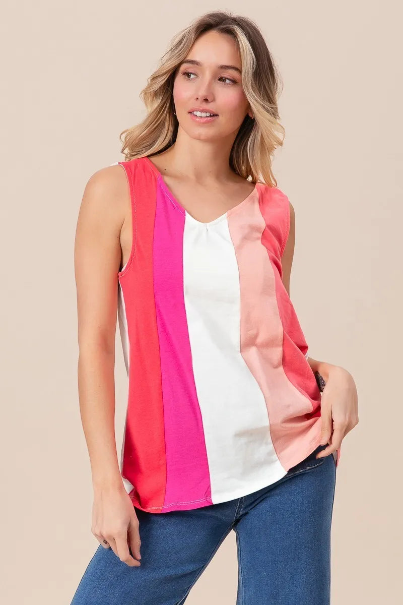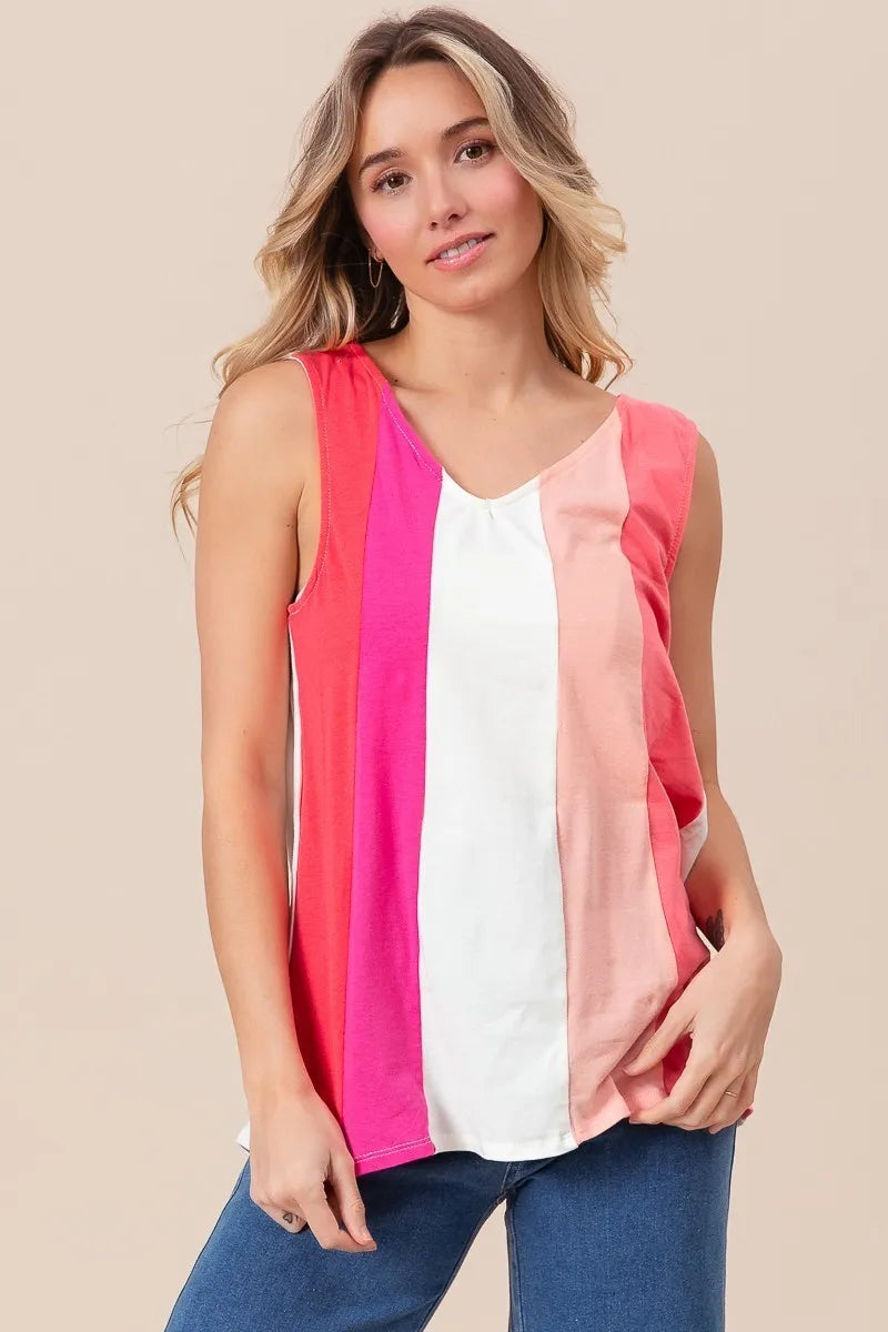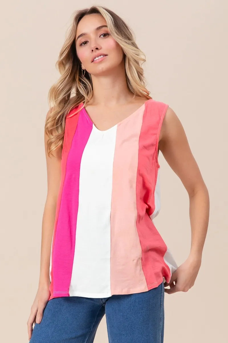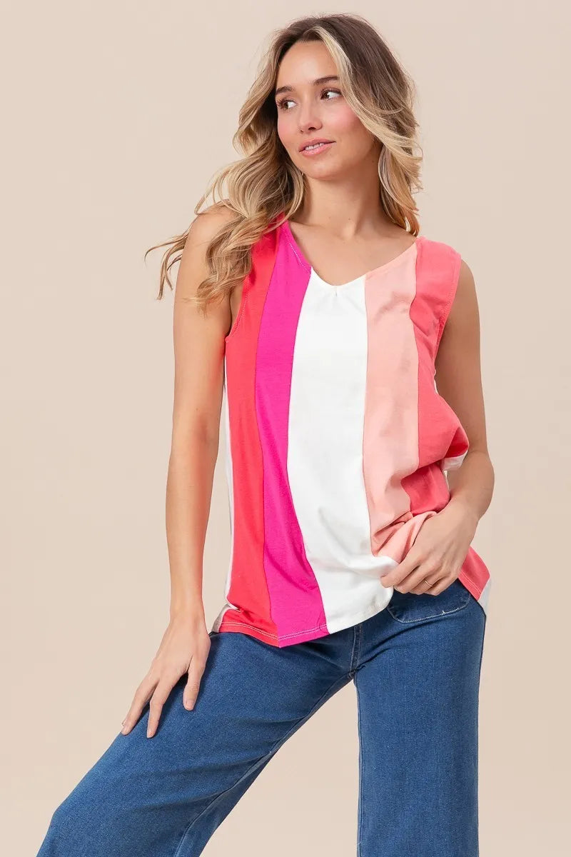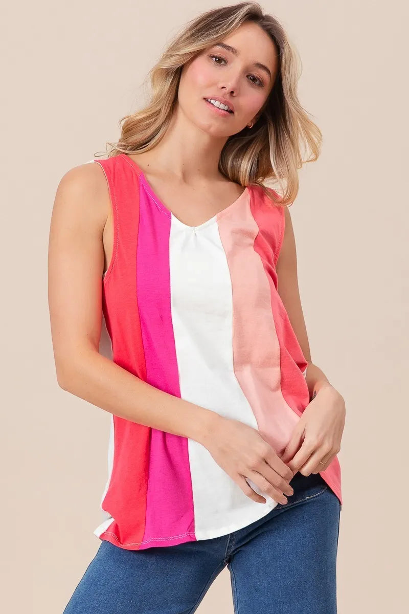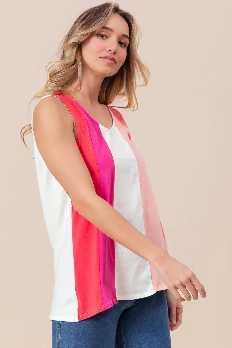 BiBi Cotton Span Knit Color Block Sleeveless Top