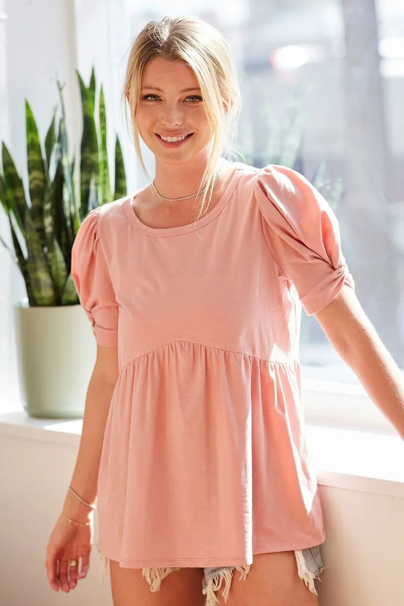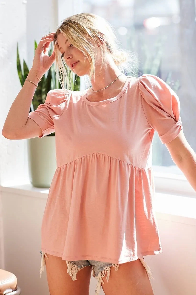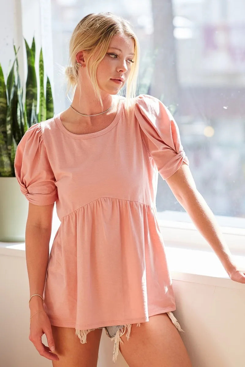 BiBi Cotton Span Knit with Puff Sleeve Baby Doll Top