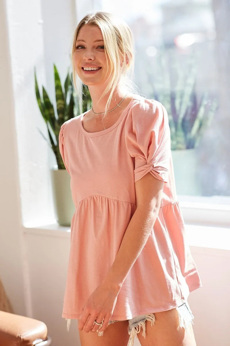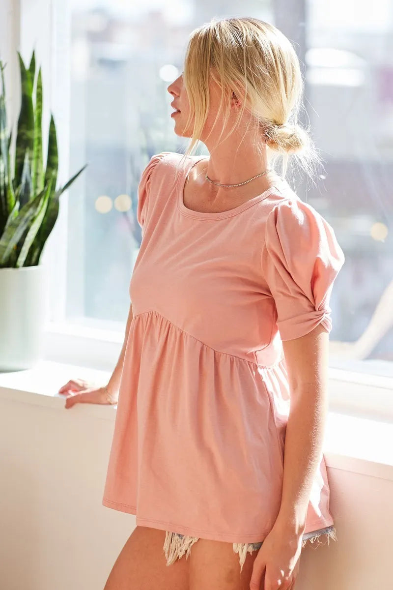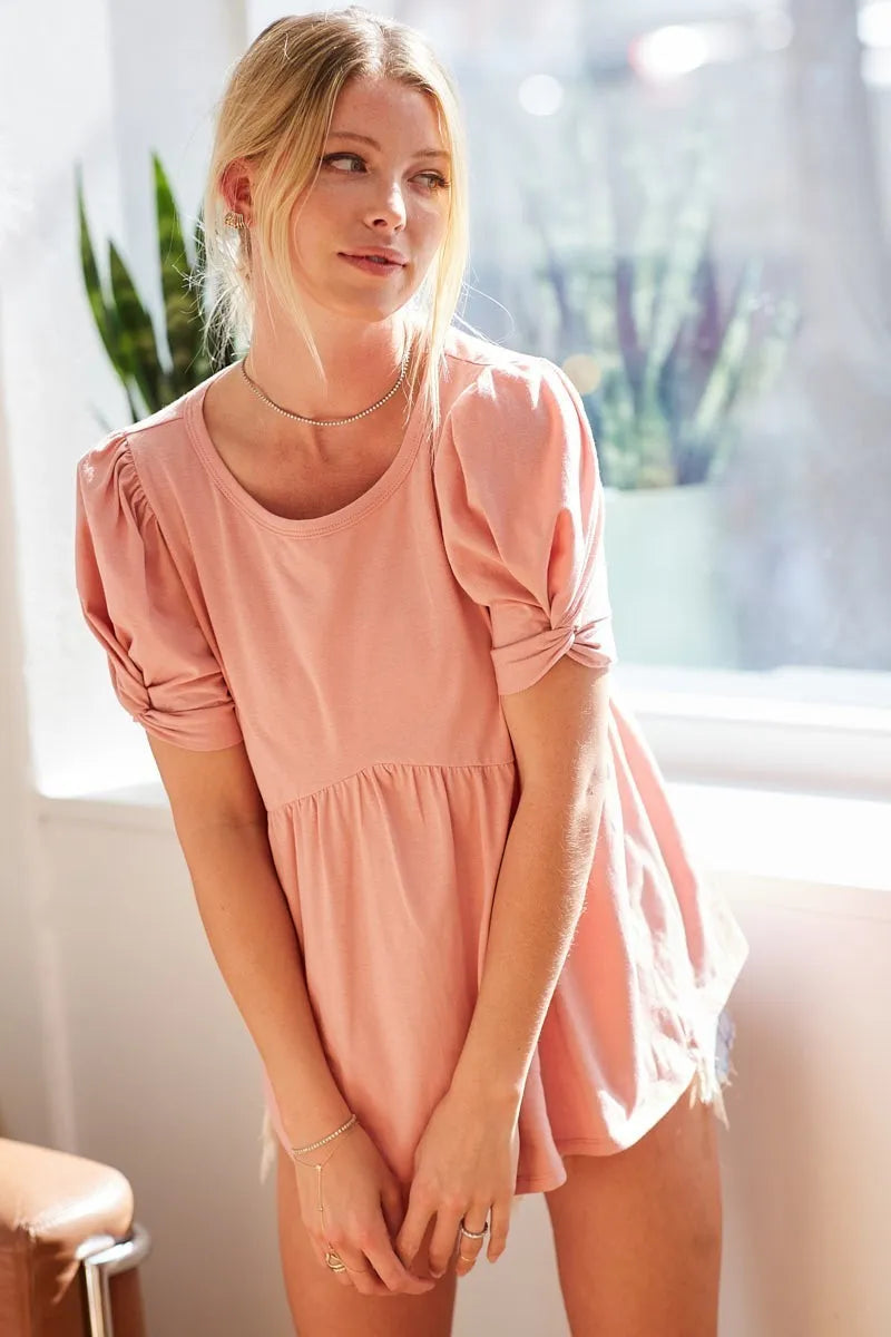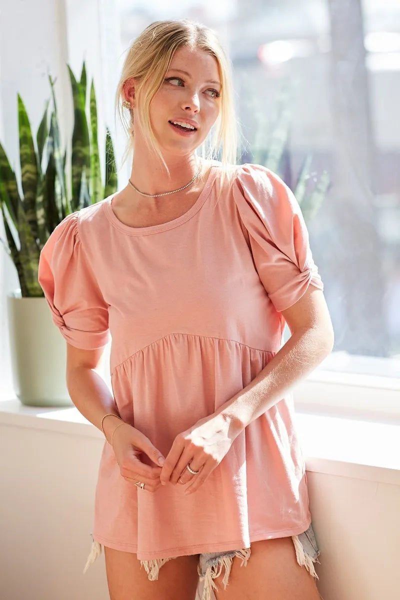 BiBi Cotton Span Knit with Puff Sleeve Baby Doll Top
