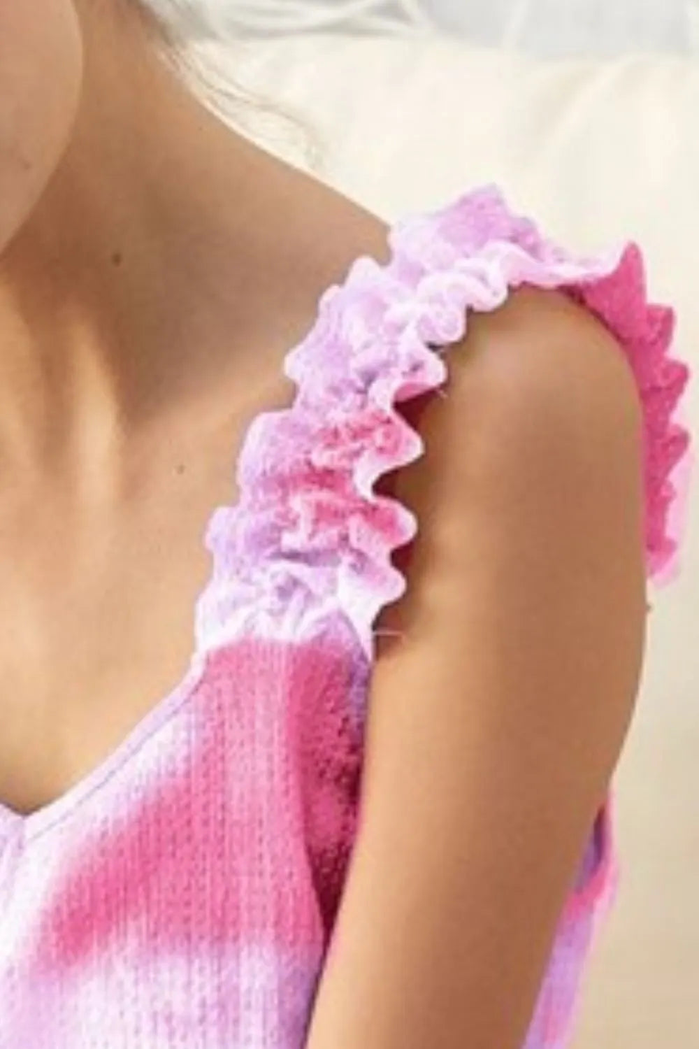 BiBi Tie Dye Printed Textured Woven with Ruffled