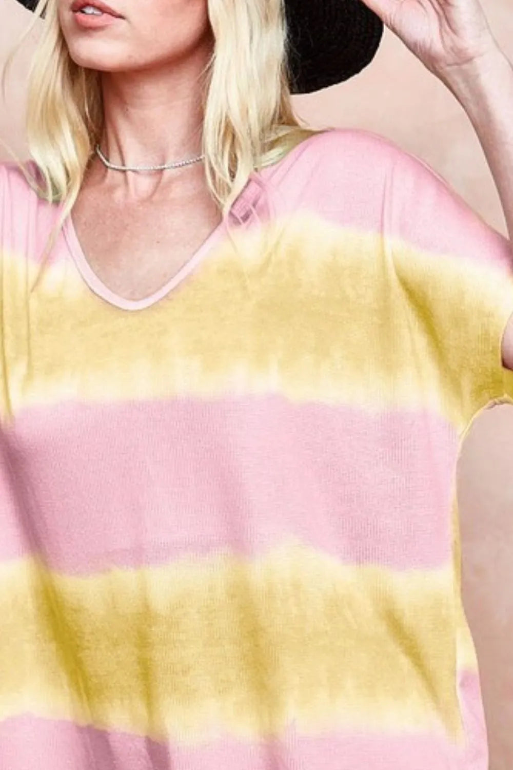 The tie-dye printed Hacci knit top is a fun and vibrant addition to your wardrobe. The tie-dye print adds a playful and colorful touch to this cozy Hacci knit top. Perfect for adding a pop of personality to your outfit, this top is ideal for casual and laid-back styling. Pair it with your favorite jeans or leggings for a relaxed and stylish look. Embrace the bohemian-inspired and trendy vibe of this tie-dye printed Hacci knit top for a fashionable and eye-catching ensemble.