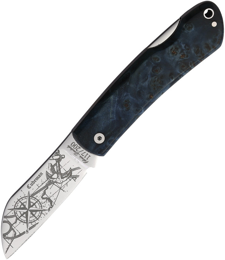 3.75" (9.53cm) closed. 2.75" (6.99cm) mirror finish Bohler N690 stainless blade. Blade etching. Lanyard hole. Blue stabilized poplar handle. Serialized... Read more