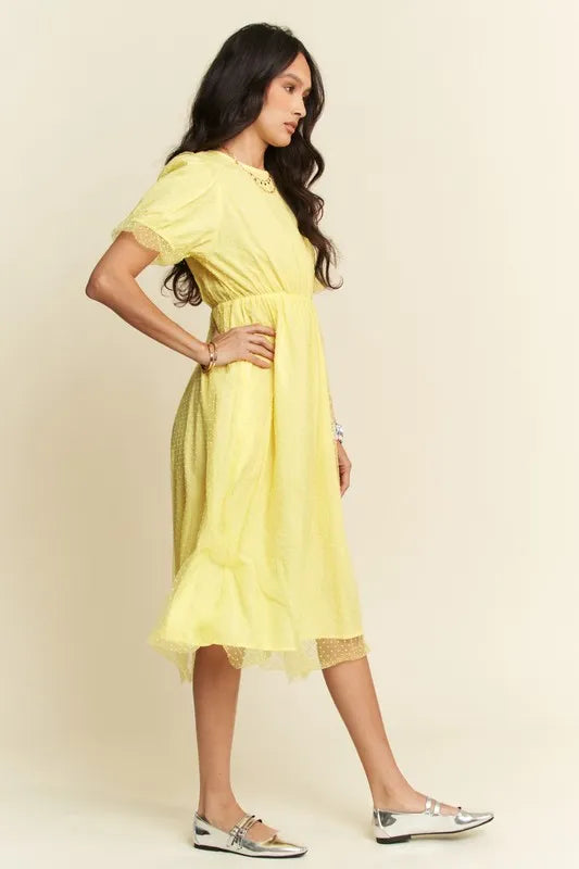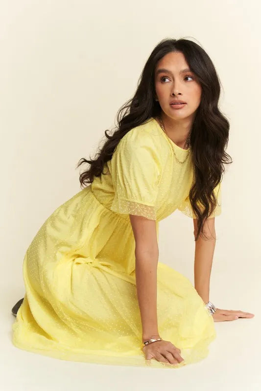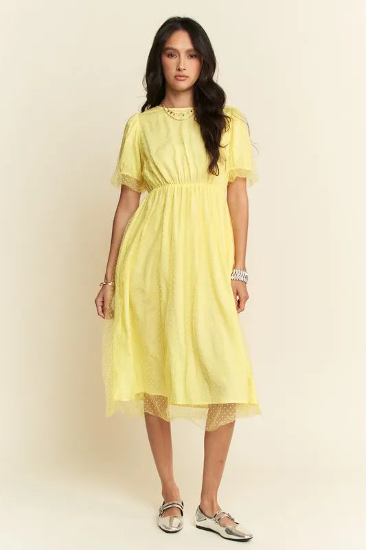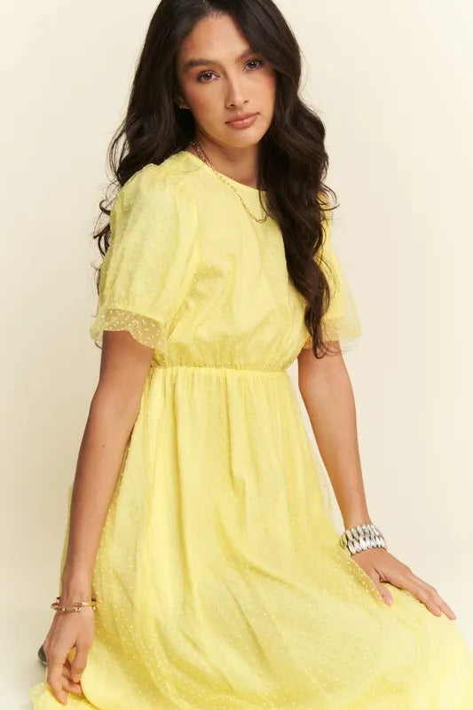 Davi & Dani Mesh Puff Short Sleeve Midi Dress