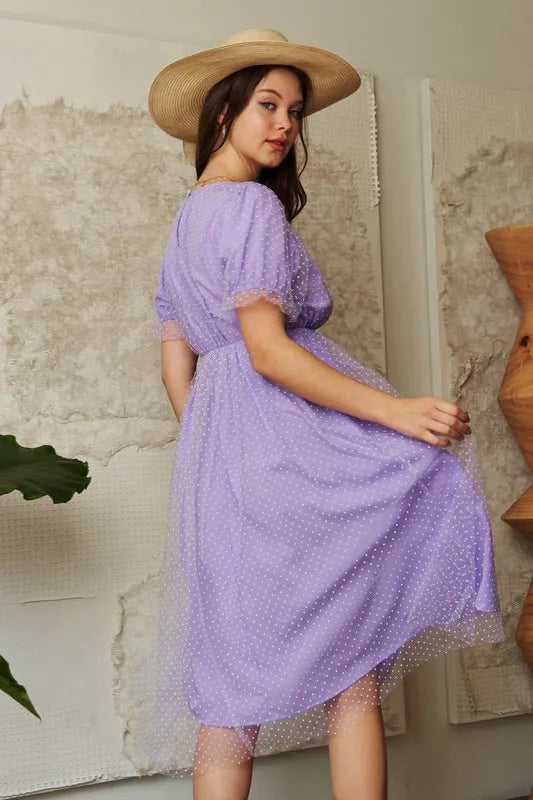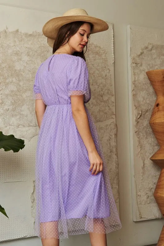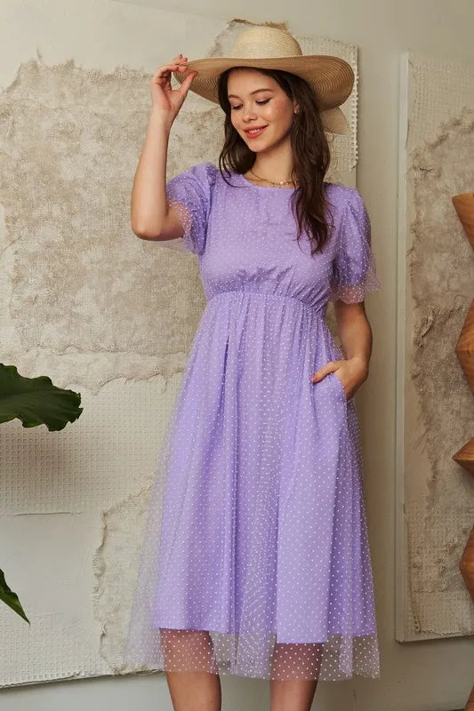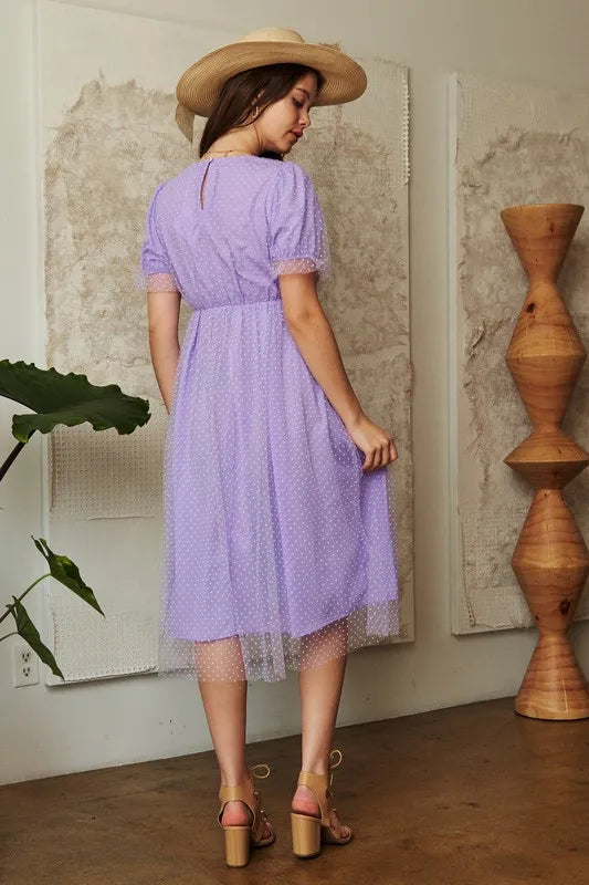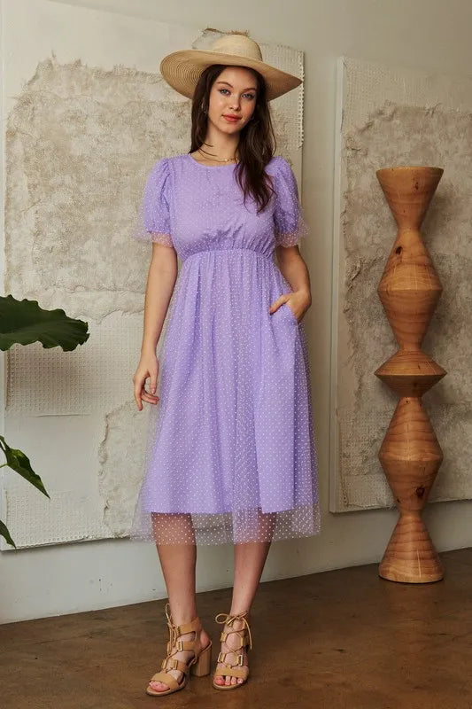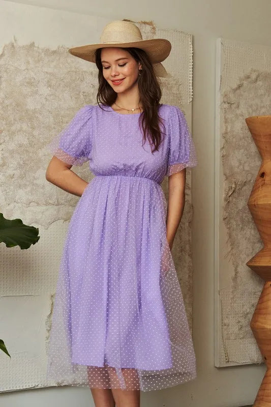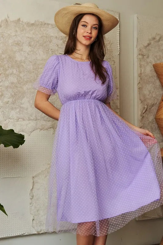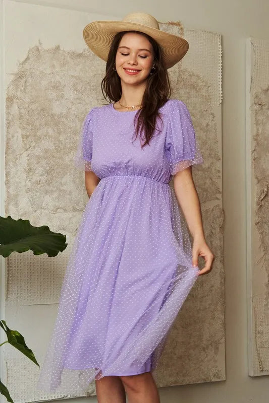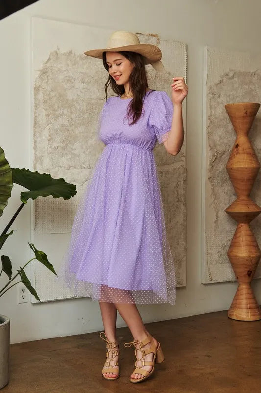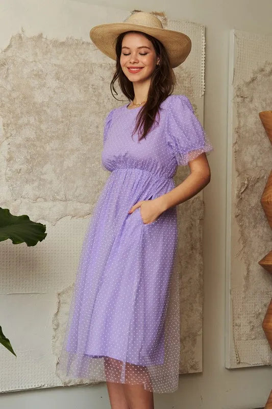 Davi & Dani Mesh Puff Short Sleeve Midi Dress