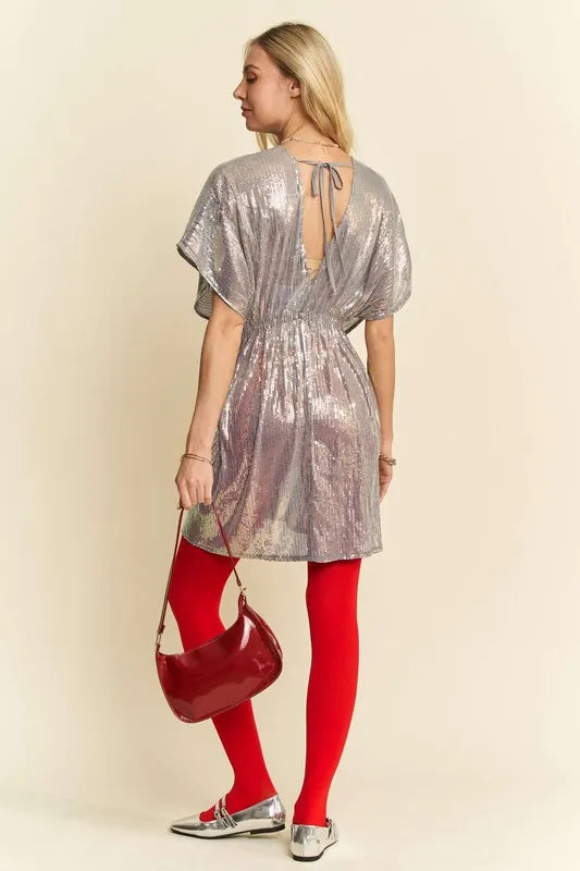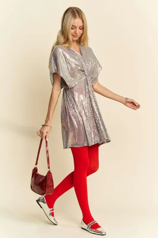 The Sequin Plunge Neck Knot Cut Out Tie Back Party Dress is a stunning and glamorous choice for special occasions or festive events. The sequin detailing adds sparkle and shimmer to the dress, making it a show-stopping piece. The plunging neckline and cut-out detailing create a bold and alluring look, while the knot and tie-back feature add a unique and stylish touch. Perfect for a night out or a formal event, this dress is sure to make a statement and turn heads. Pair it with heels and statement accessories for a chic and glamorous ensemble. Stand out and shine in the Sequin Plunge Neck Knot Cut Out Tie Back Party Dress for a dazzling and sophisticated look.