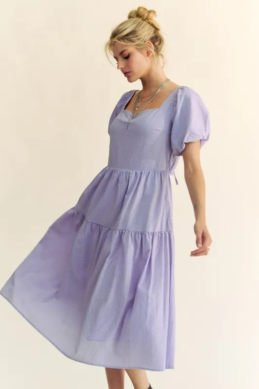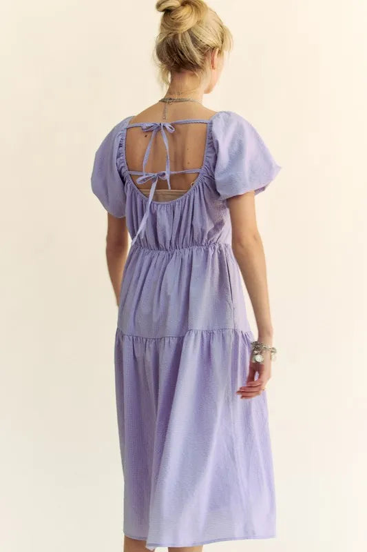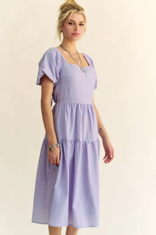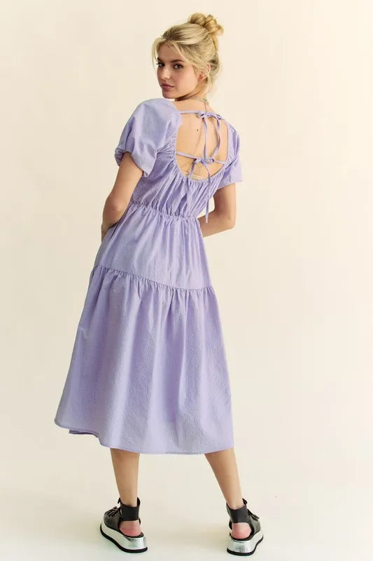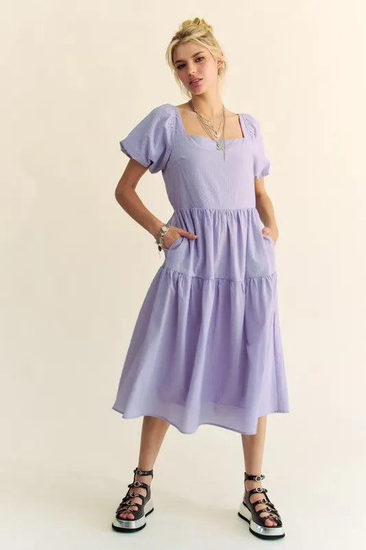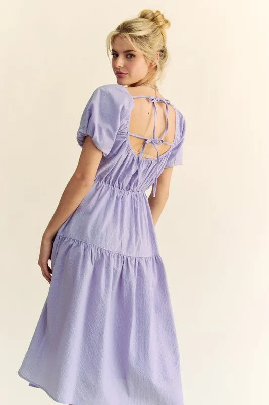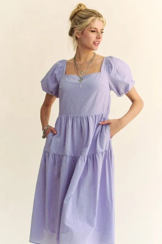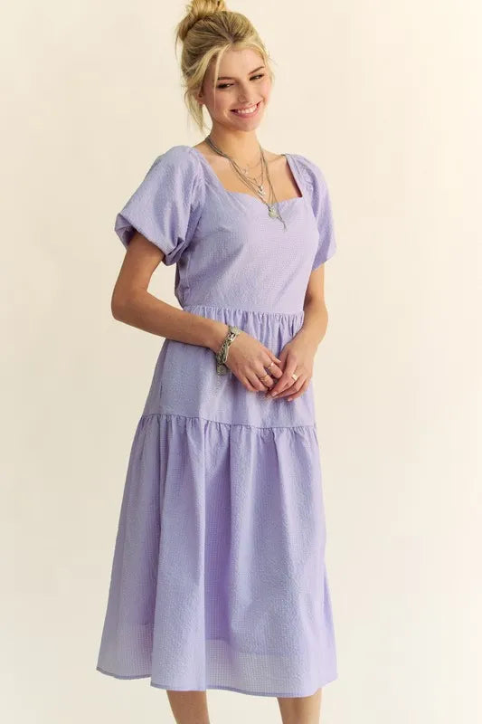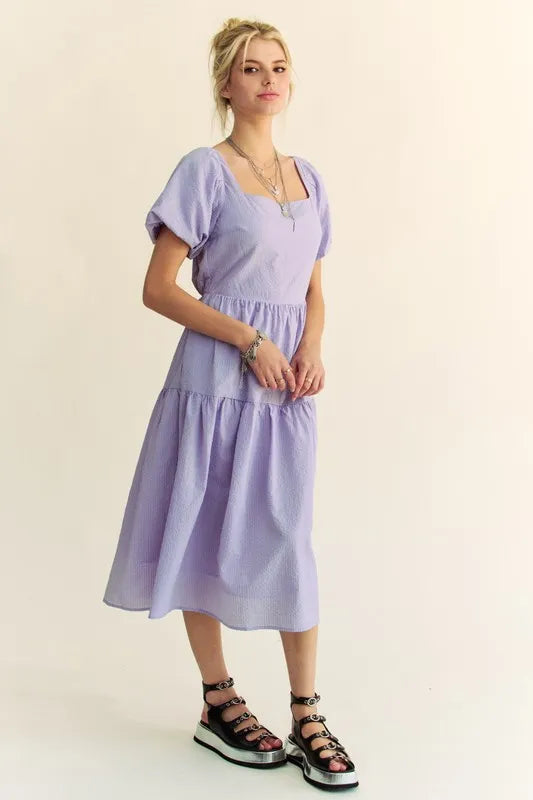 Davi & Dani Textured Fabric Short Puff Sleeve Midi Dress