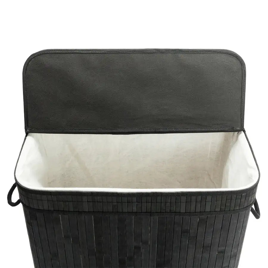 Flip Type Bamboo Laundry Hamper Wooden Folding Dirty Clothes Storage Basket Body with Removable Liners RT
