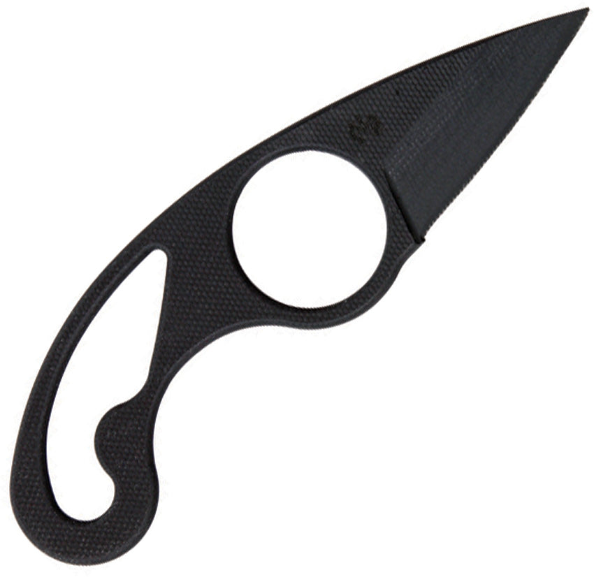 4 3/4" overall. 1 3/4" drop point blade. One piece black G-10 construction with integrated finger ring. Skeletonized handle. Black... Read more