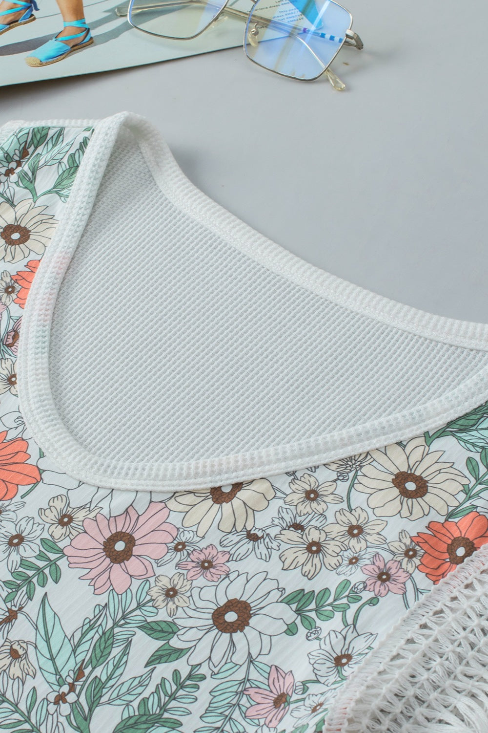 Fringe Printed V-Neck Top