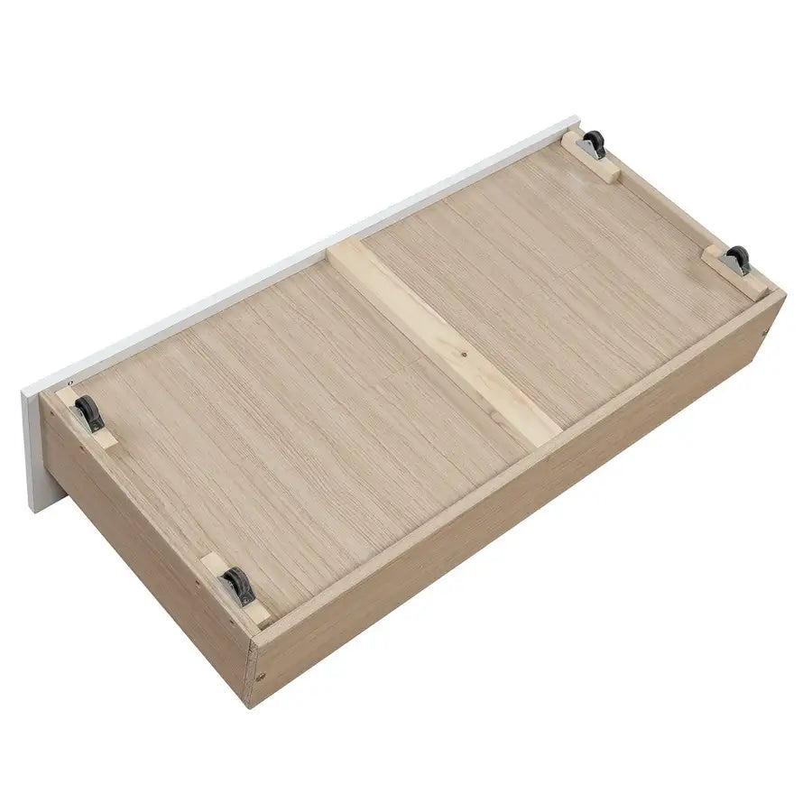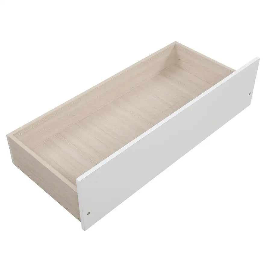 Twin compartments of different sizes hide underneath the stairs of this bunk bed and a drawer are perfect for you to store quilts, bed sheets and other necessities. On top of that, you can store books and toys, making room-tidying a breeze.