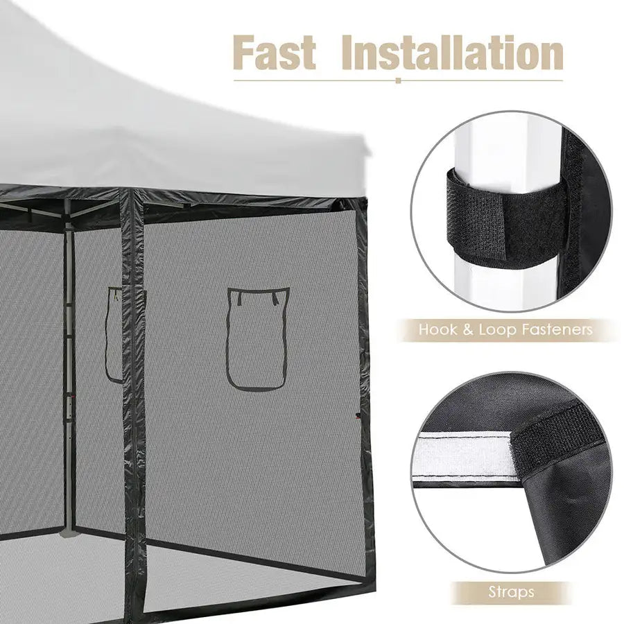 4pcs 10 1/12ft x 7 5/12ft mesh sidewalls; fitting for 10ft x 10 ft pop up canopy tent; to keep food sanitary for food vendor and offer high visibility for promoting your products