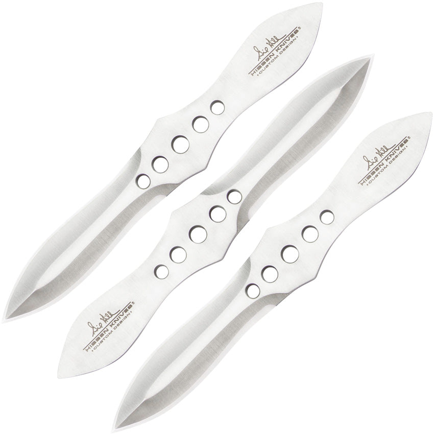 8" (20.32cm) overall. 3.75" (9.53cm) satin finish 3Cr13 stainless blade. One-piece construction. Set of three. Black nylon belt sheath. Boxed.... Read more