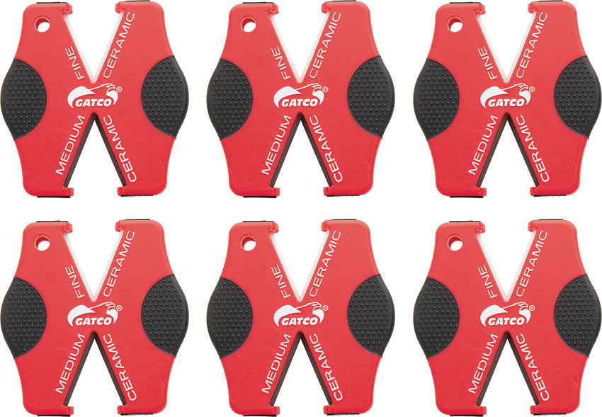 Pack of six. Dimensions: 2.75" x 2.63" x 0.38". Red ABS handle. Non-slip base. Lanyard hole. Sharpens plain and serrated... Read more