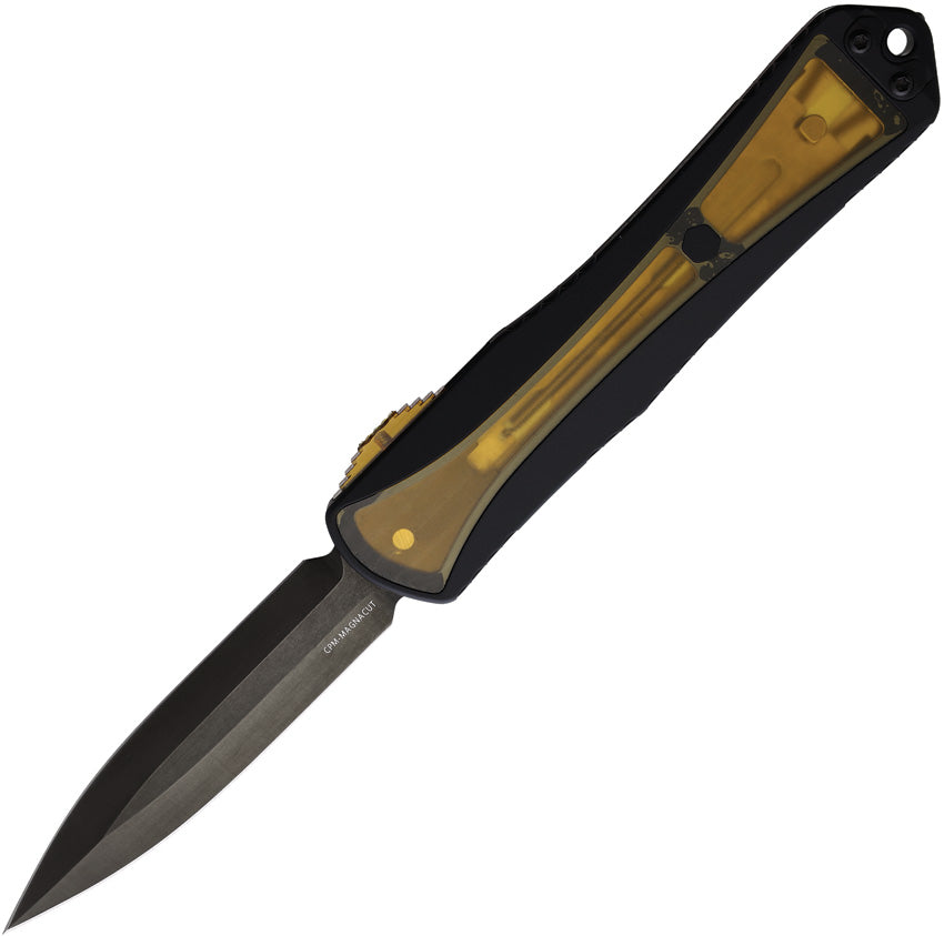 Automatic opening. 5.5" (13.97cm) closed. 3.75" (9.53cm) black DLC coated double edge MagnaCut steel spear point blade. Black aluminum handle... Read more