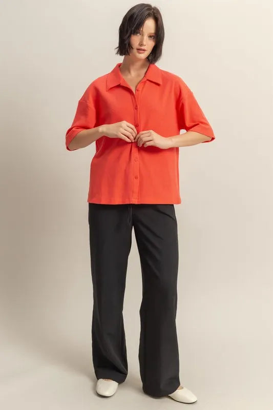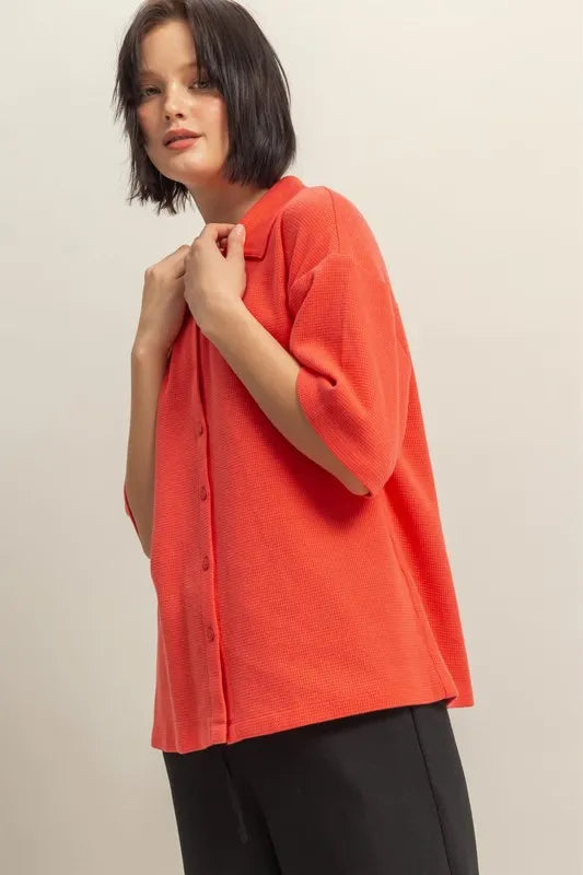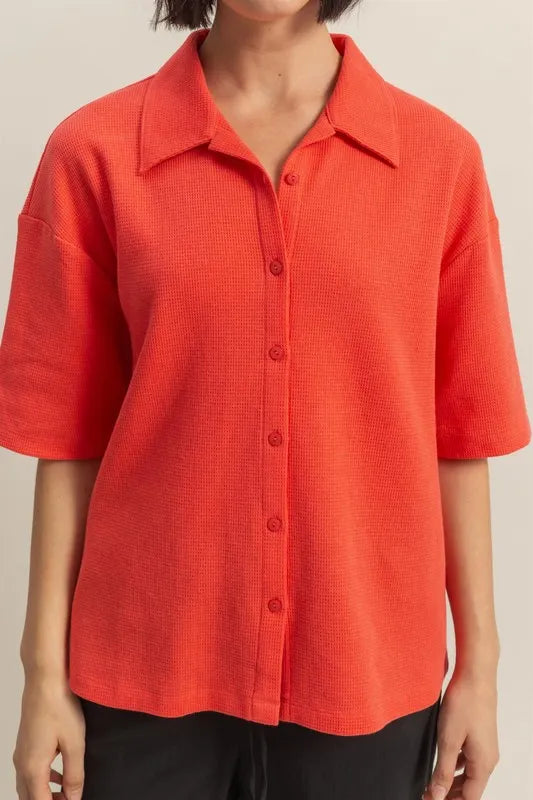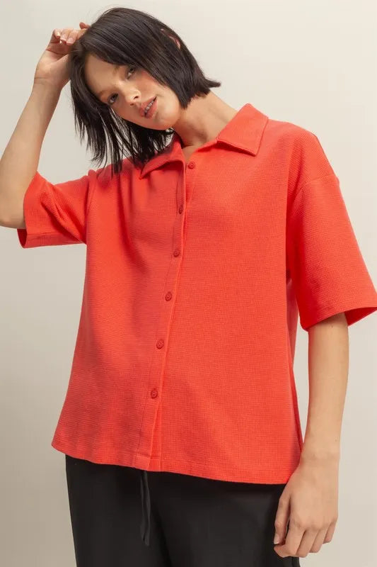 Elevate your casual wardrobe with this Collared Neck Button Down Waffle Shirt. The collared neck adds a touch of refinement... Read more