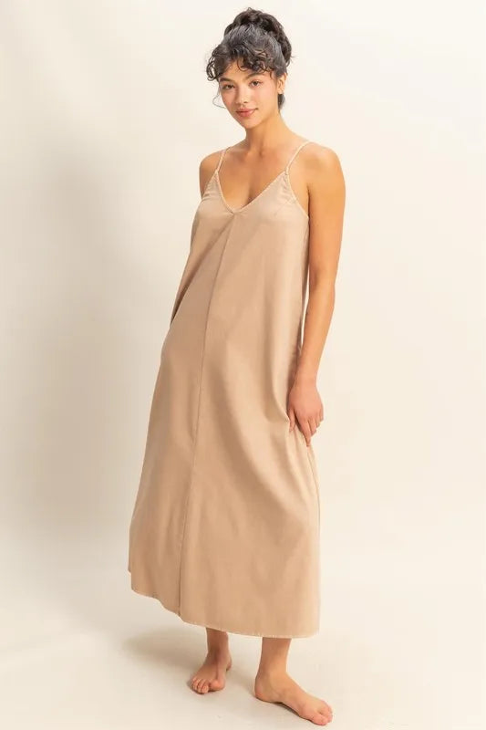 The Dyed V-Neck Loose Dress is a versatile and effortless piece for your wardrobe. With a flattering V-neckline and relaxed, loose fit, this dress offers comfort and style in one. The dyed fabric adds a touch of uniqueness and character, making it a standout choice for various occasions. Perfect for a laid-back yet fashionable look, this dress can be dressed up or down with ease.