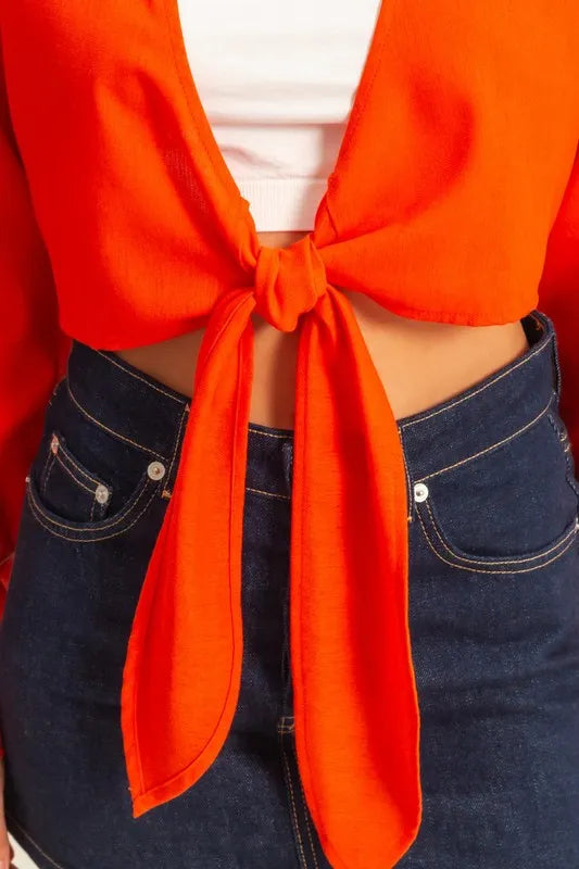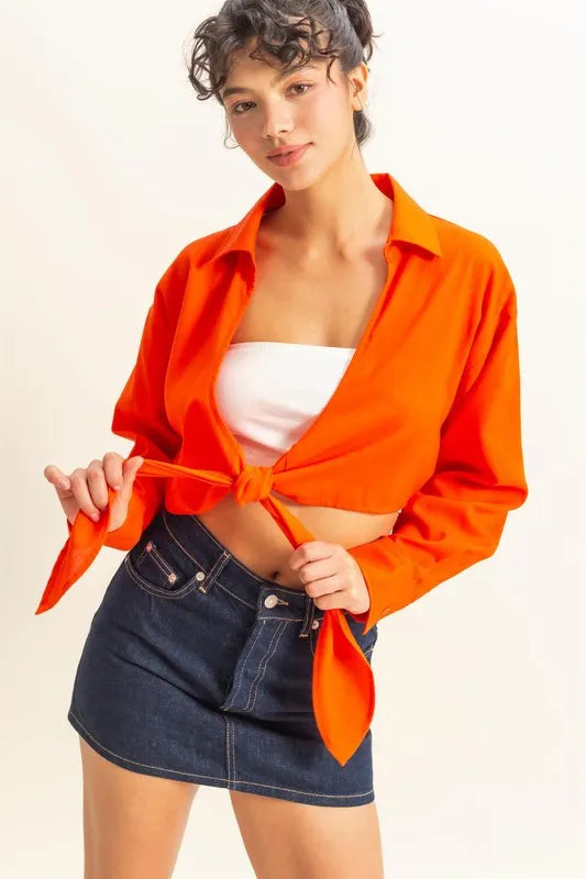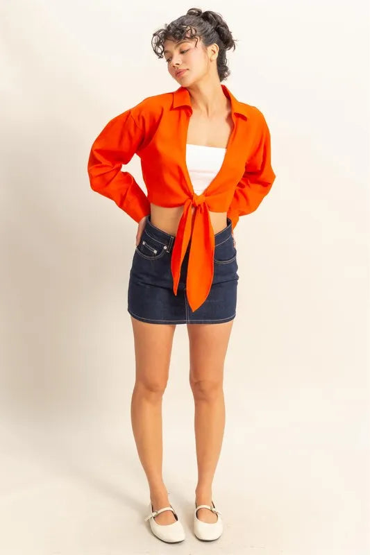 HYFVE Washed Tie Front Crop Top