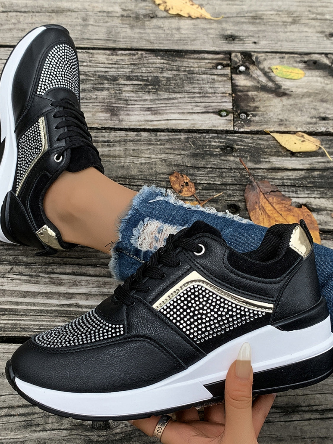 Lace-Up Rhinestone Wedge Sneakers