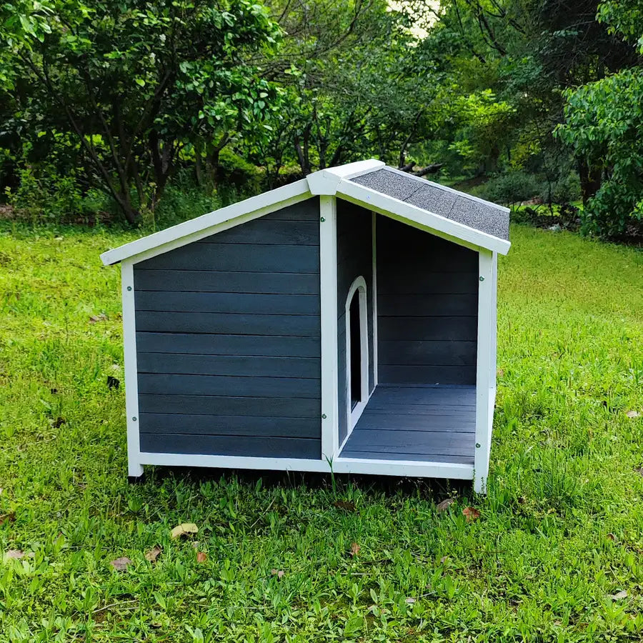 Large Outdoor Wooden Dog House; Waterproof Dog Cage; Windproof and Warm Dog Kennel with Porch Deck