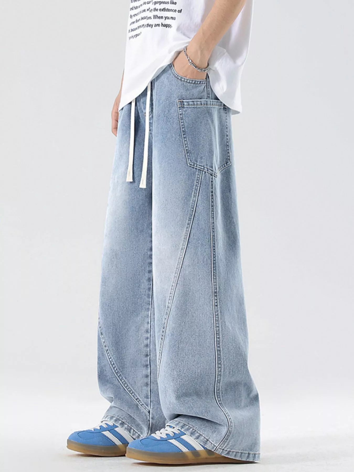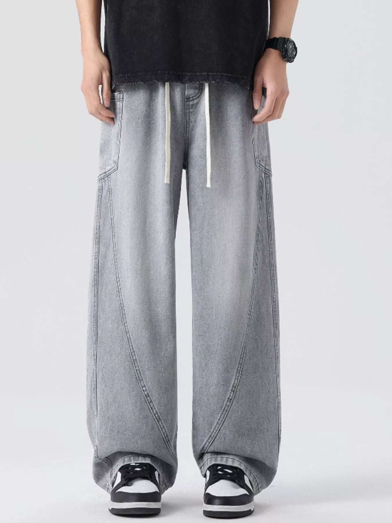 Men's Full Size Wide Leg Wash Denim Jeans Plus Size