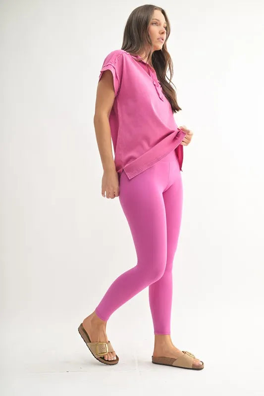 The Mineral Wash Half Button Tee is a versatile and laid-back staple for your wardrobe. The mineral wash gives it a unique and vintage look with subtle variations in color. Featuring a half button-up design, this tee adds a touch of interest and style to your outfit. Perfect for casual outings or lounging at home, this tee is comfortable and easy to wear. Pair it with your favorite jeans or shorts for a relaxed and effortless look. Stay comfortable and on-trend with the Mineral Wash Half Button Tee for a cool and relaxed vibe.